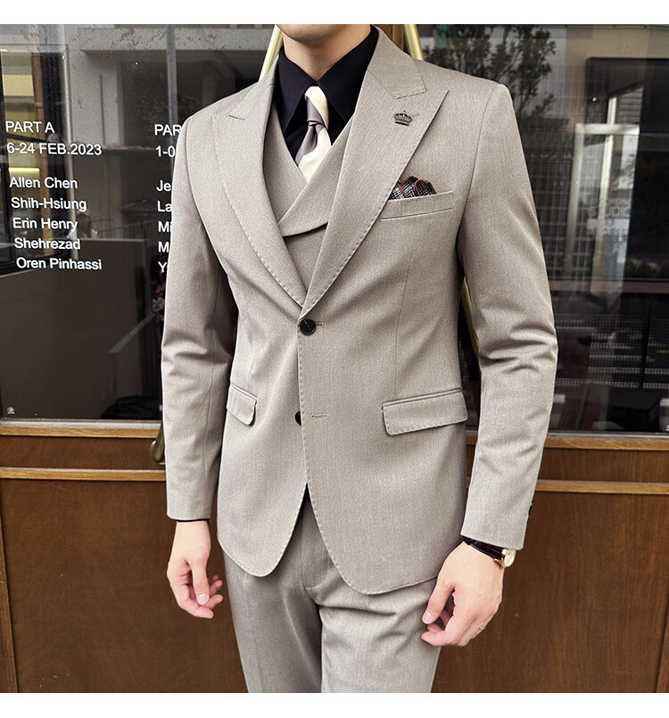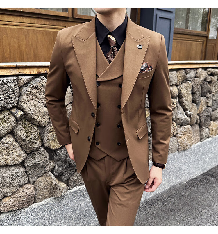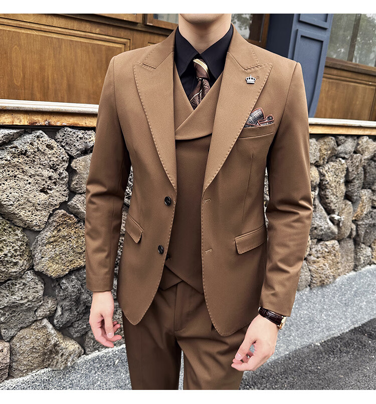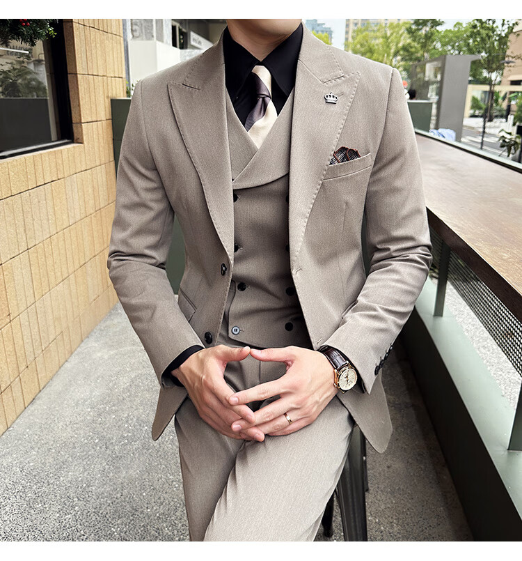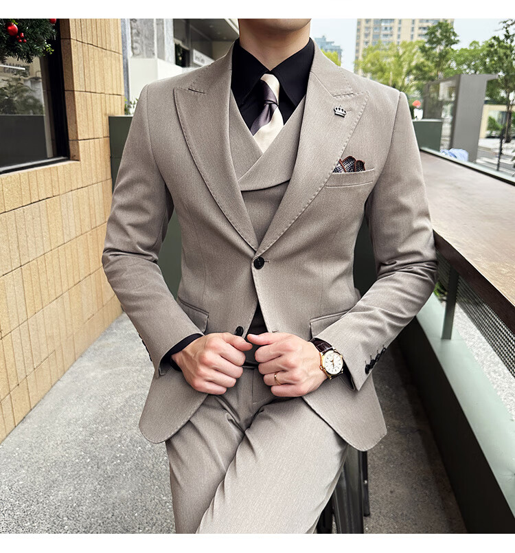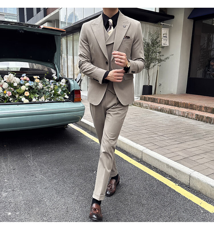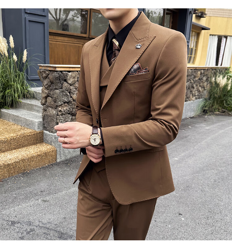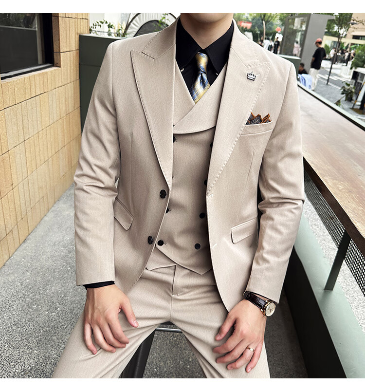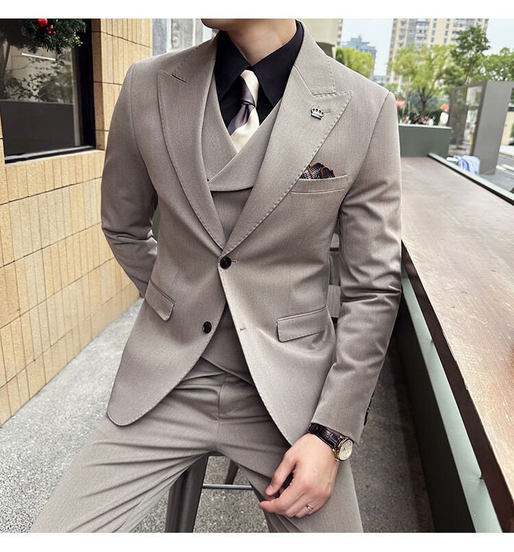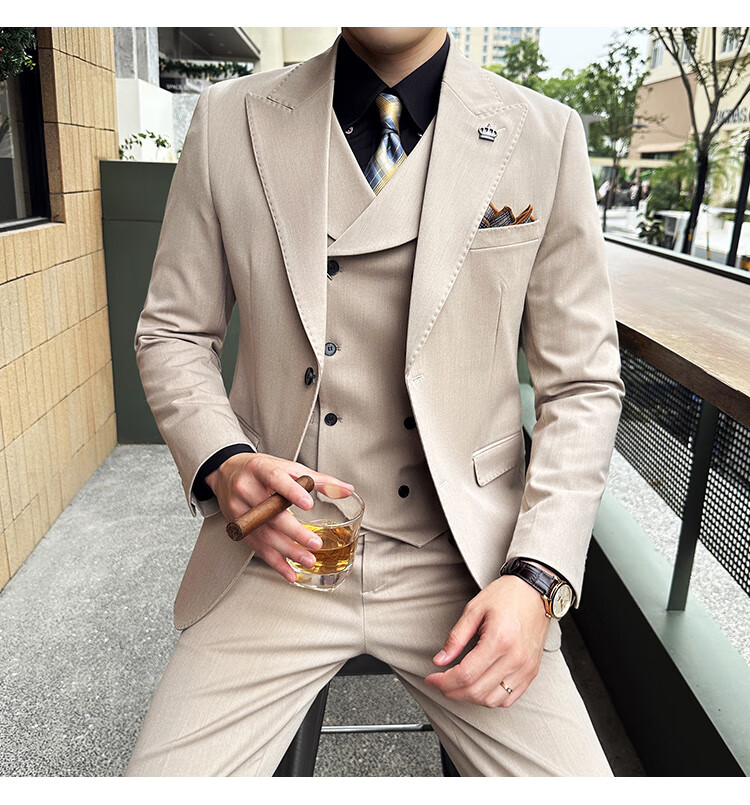 ROMON Italian groom suit men's wedding formal dress Korean style slim lapel business casual suit jacket 9002 navy blue (suit + vest + pants) XL