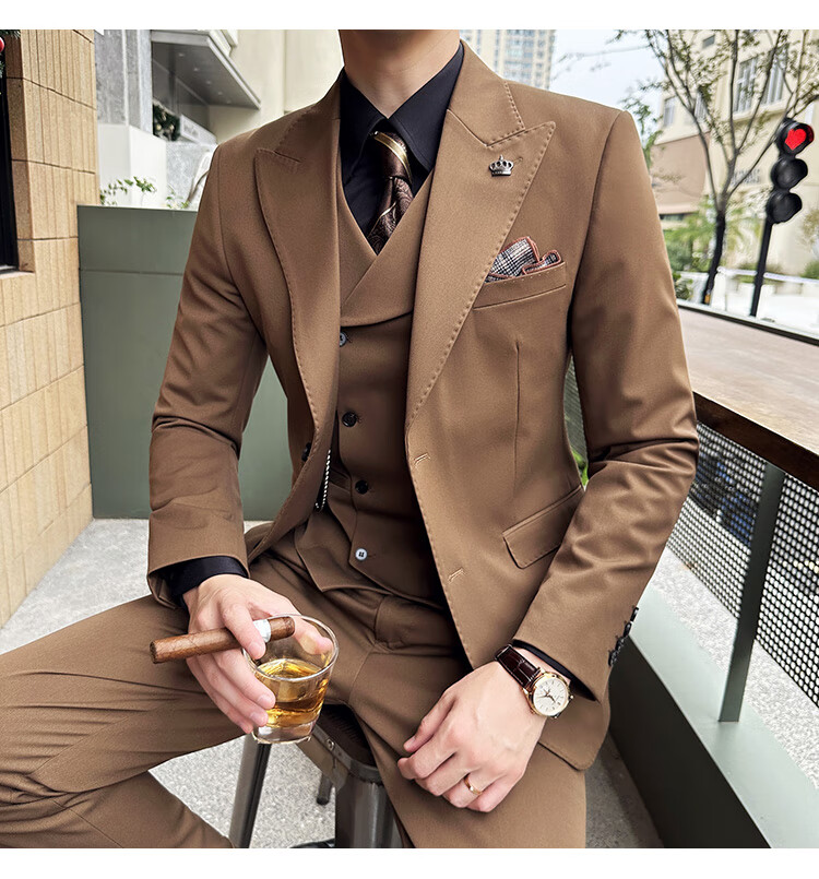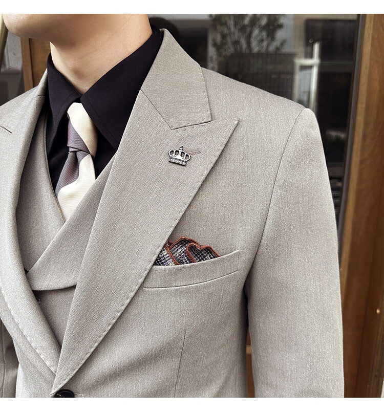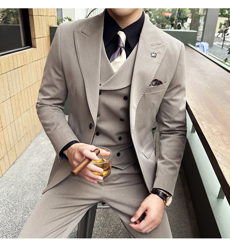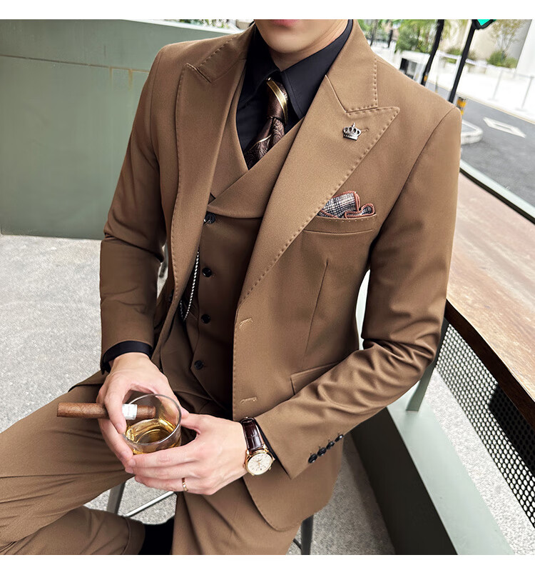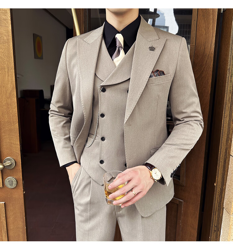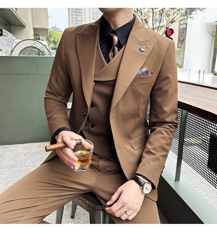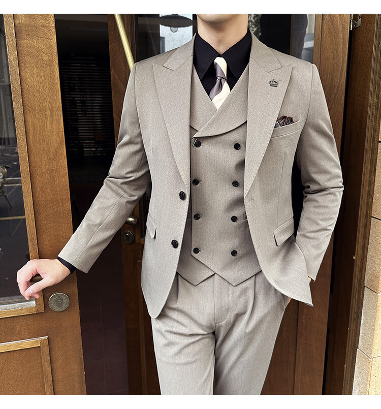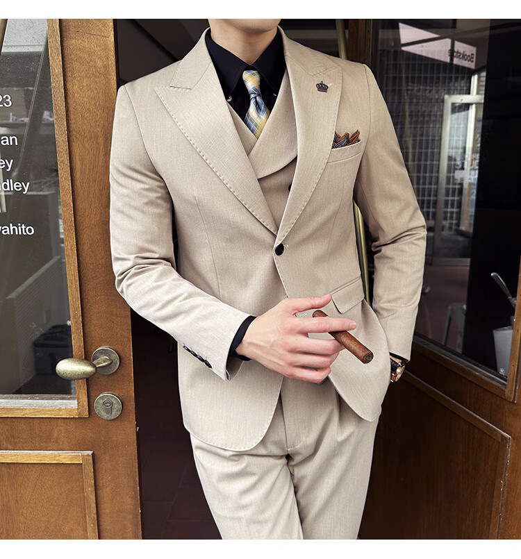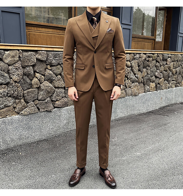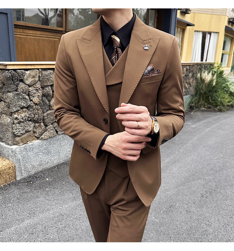 ROMON Italian groom suit men's wedding formal dress Korean style slim lapel business casual suit jacket 9002 navy blue (suit + vest + pants) XL