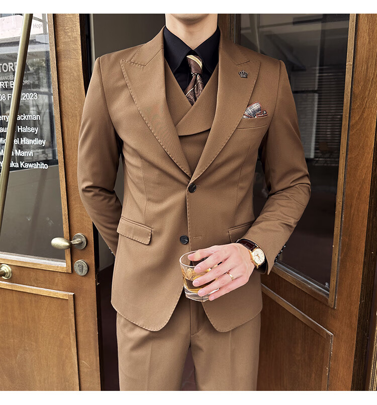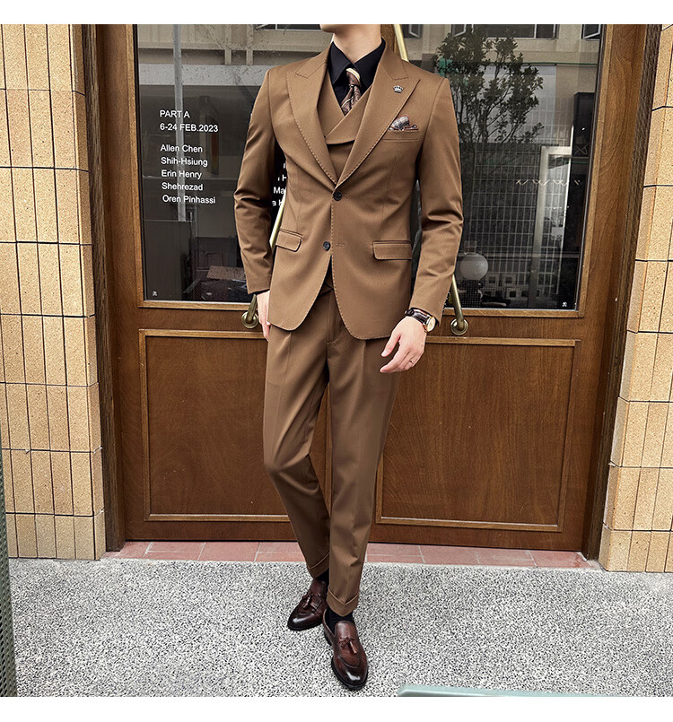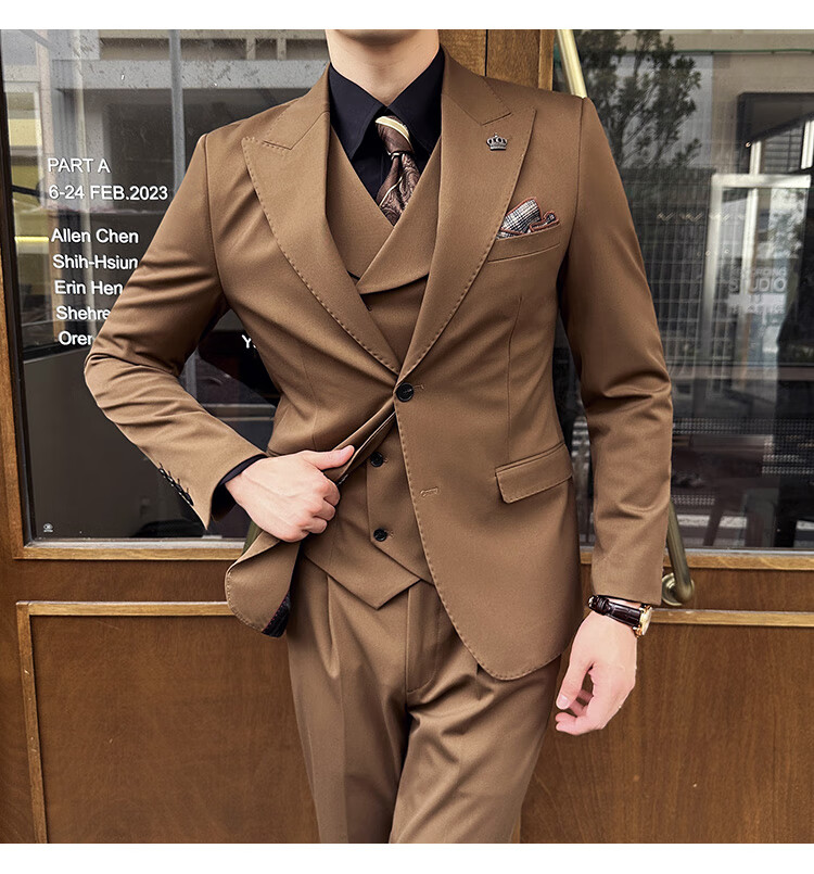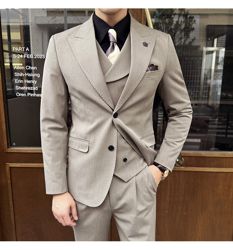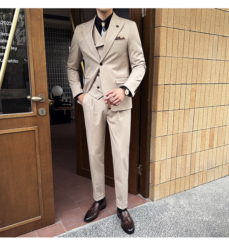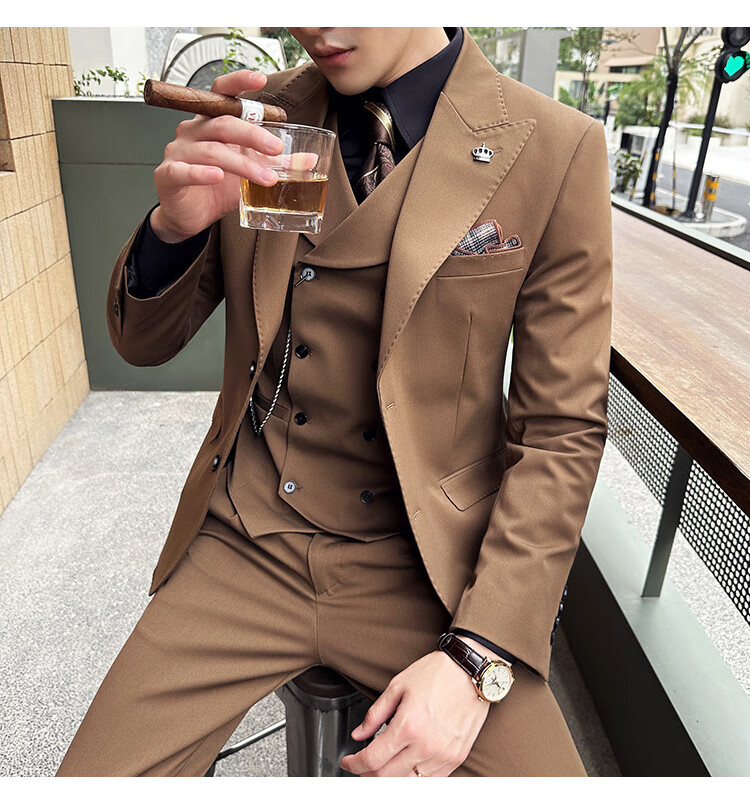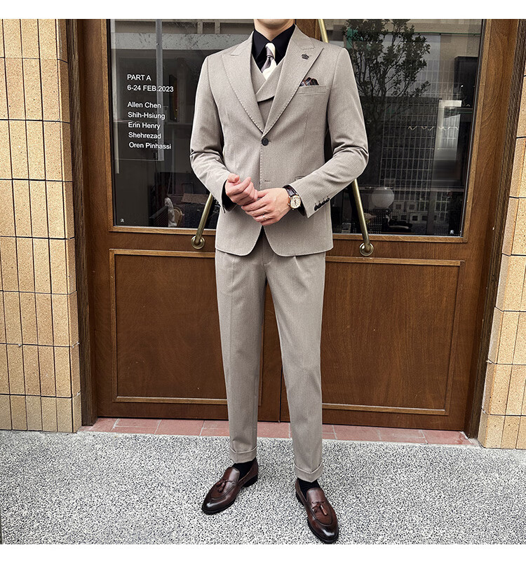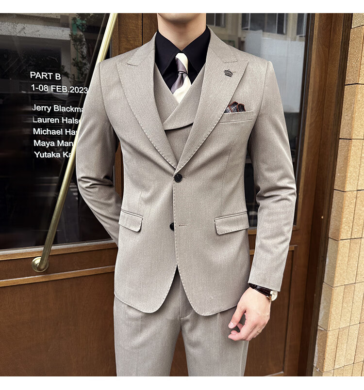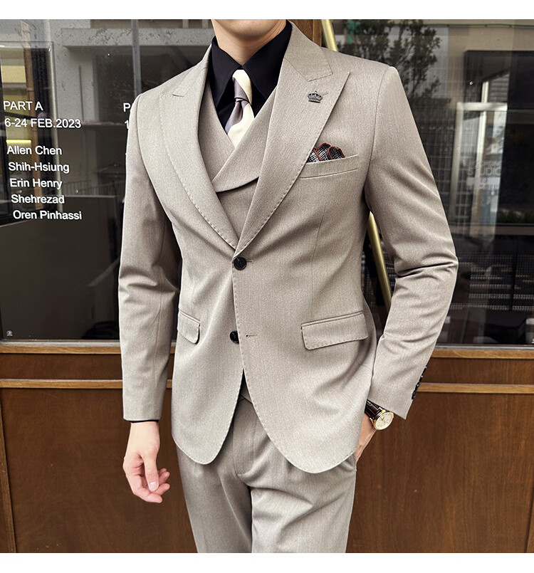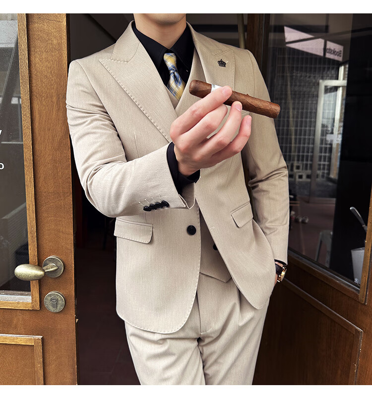 ROMON Italian groom suit men's wedding formal dress Korean style slim lapel business casual suit jacket 9002 navy blue (suit + vest + pants) XL