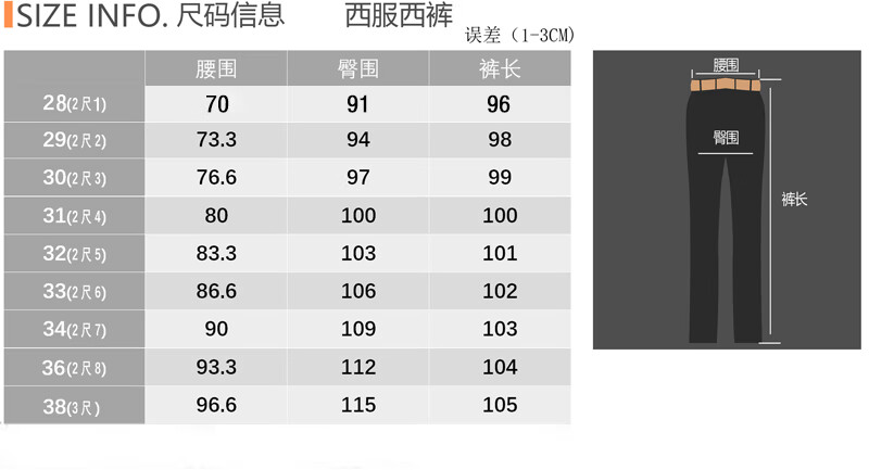 USA(inch) 28-30 30-32 32-34 34-38 38-42