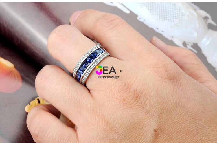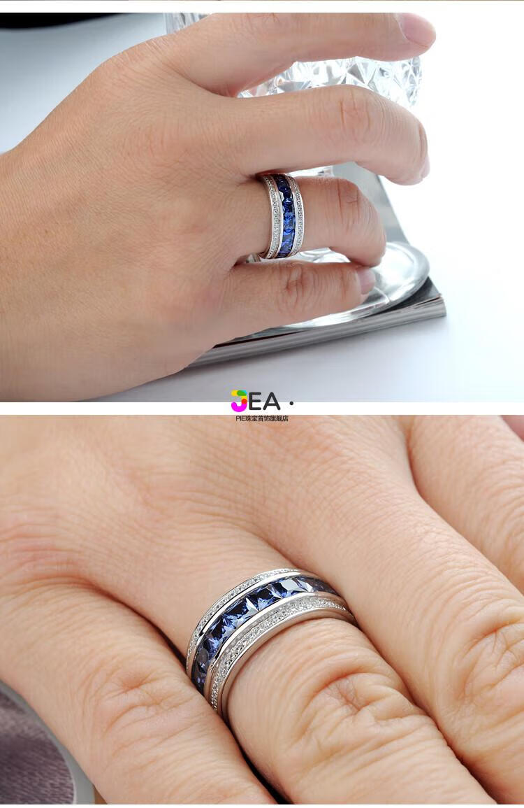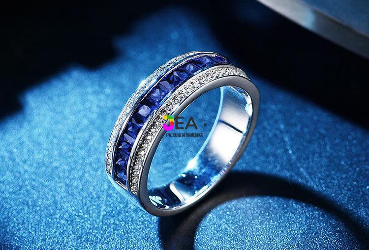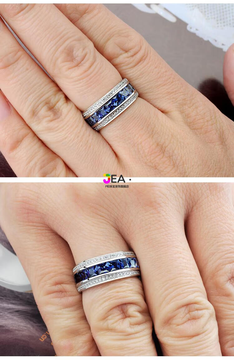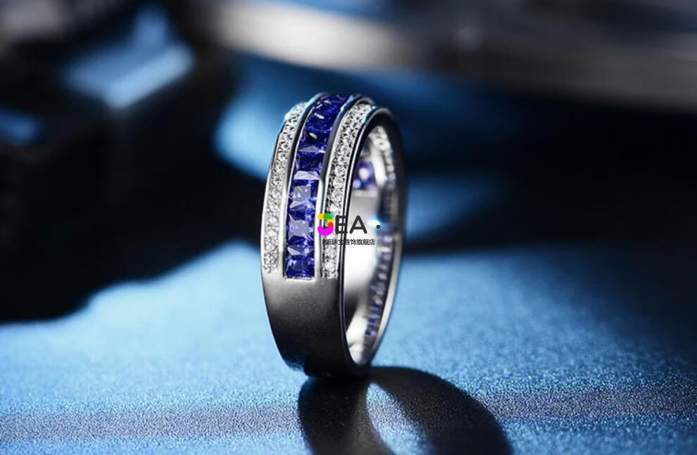 Jea.Pie boutique 2025 new tanzanite ring, sapphire men's single row of diamonds, 925 silver platinum-plated diamonds, customized full circle wide version, default blue - 10~15 days