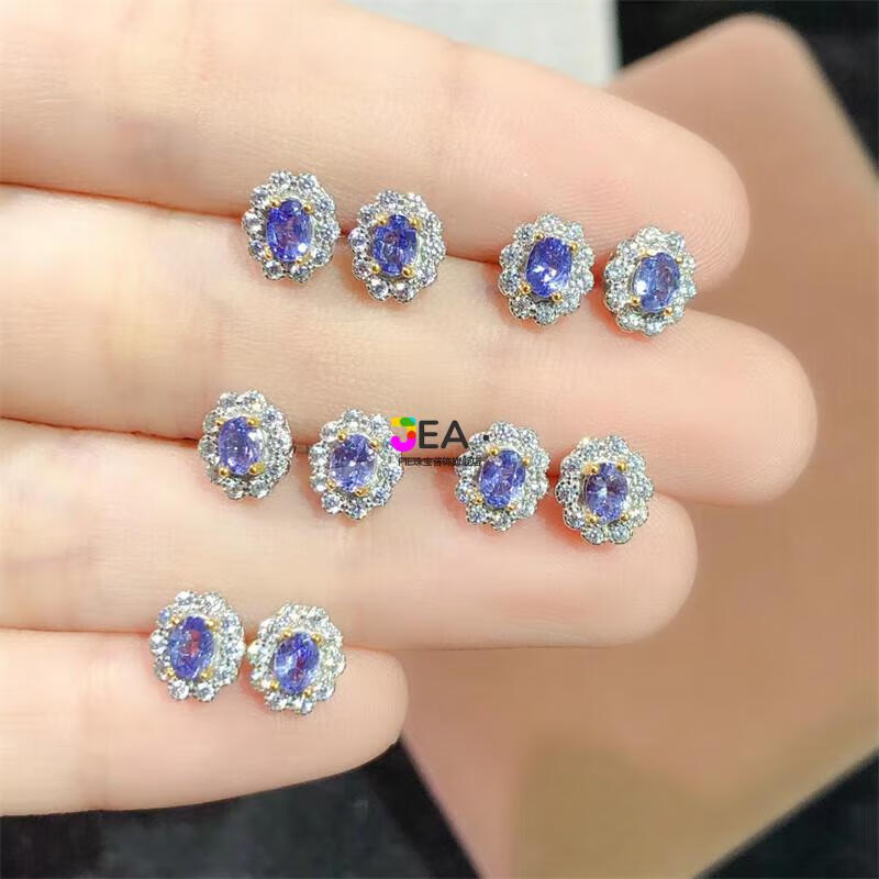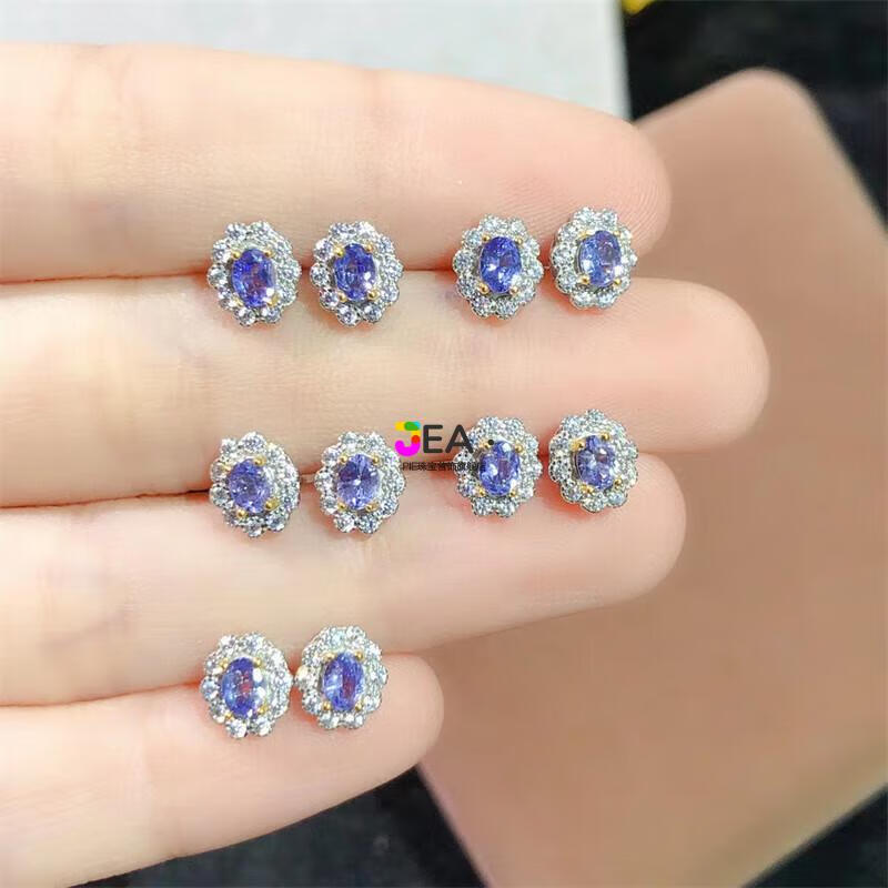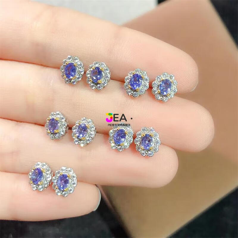 Jea.Pie boutique 2025 new tanzanite earrings new natural s925 silver inlaid blue-purple gemstone earrings random pair