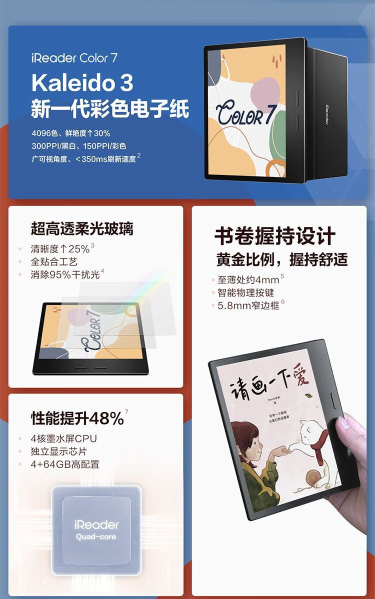 IReader iReader Color7 new color ink screen e-book reader 7-inch e-paper book Color 7 64G+ comes with leather case