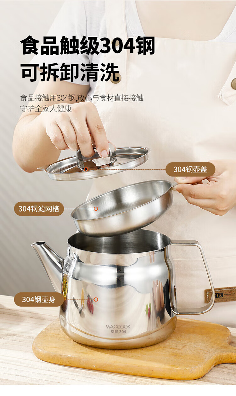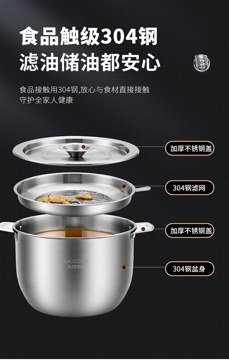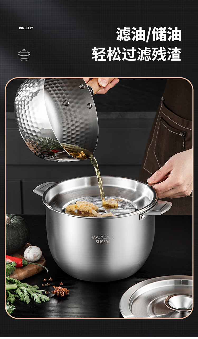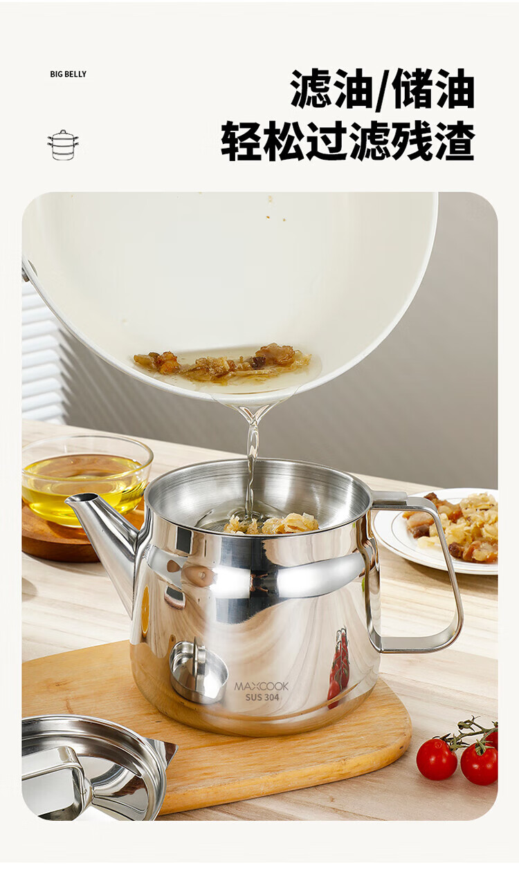 MAXCOOK lard tank 304 stainless steel oil basin with lid and high temperature resistance kitchen chili oil seasoning tank household storage filter oil pot with filter oil basin 2.8L MCWA9035