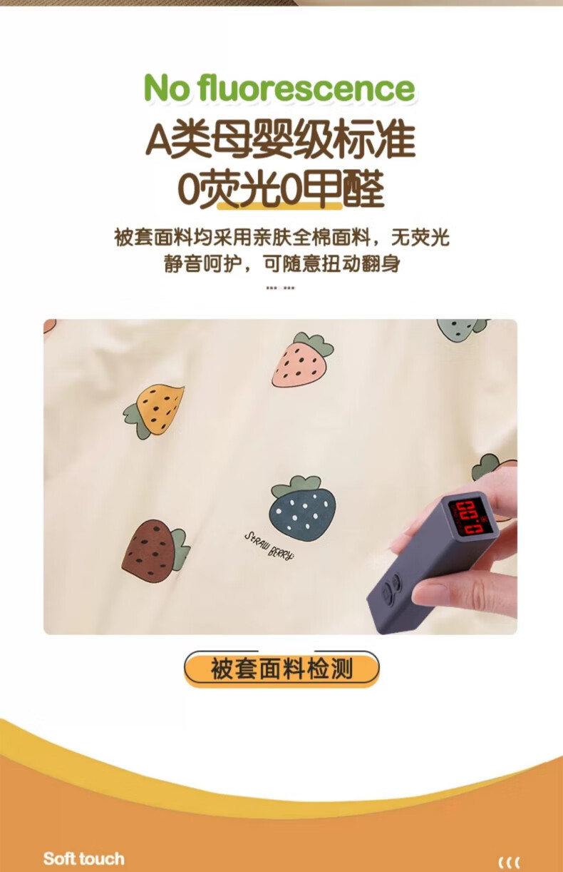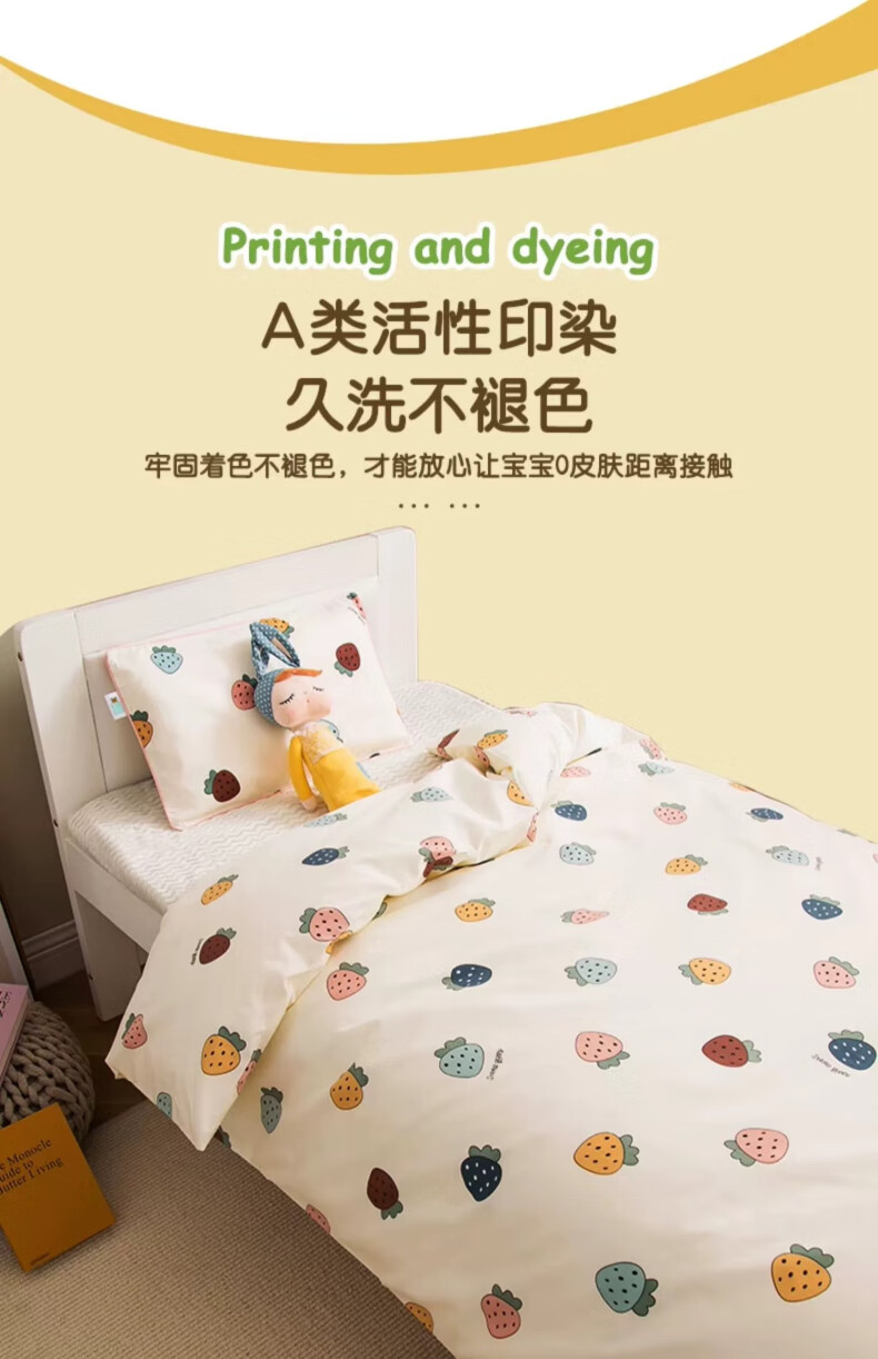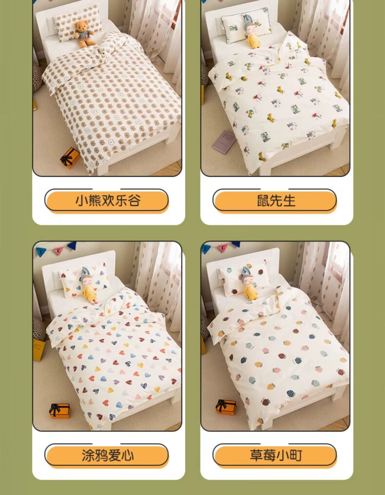 Kinzhibao 100-count pure cotton children's quilt cover single piece 1.2m 1.5m bed cotton cartoon baby kindergarten quilt cover Strawberry Komachi 100-count long-staple cotton 120x150cm cotton children's quilt cover