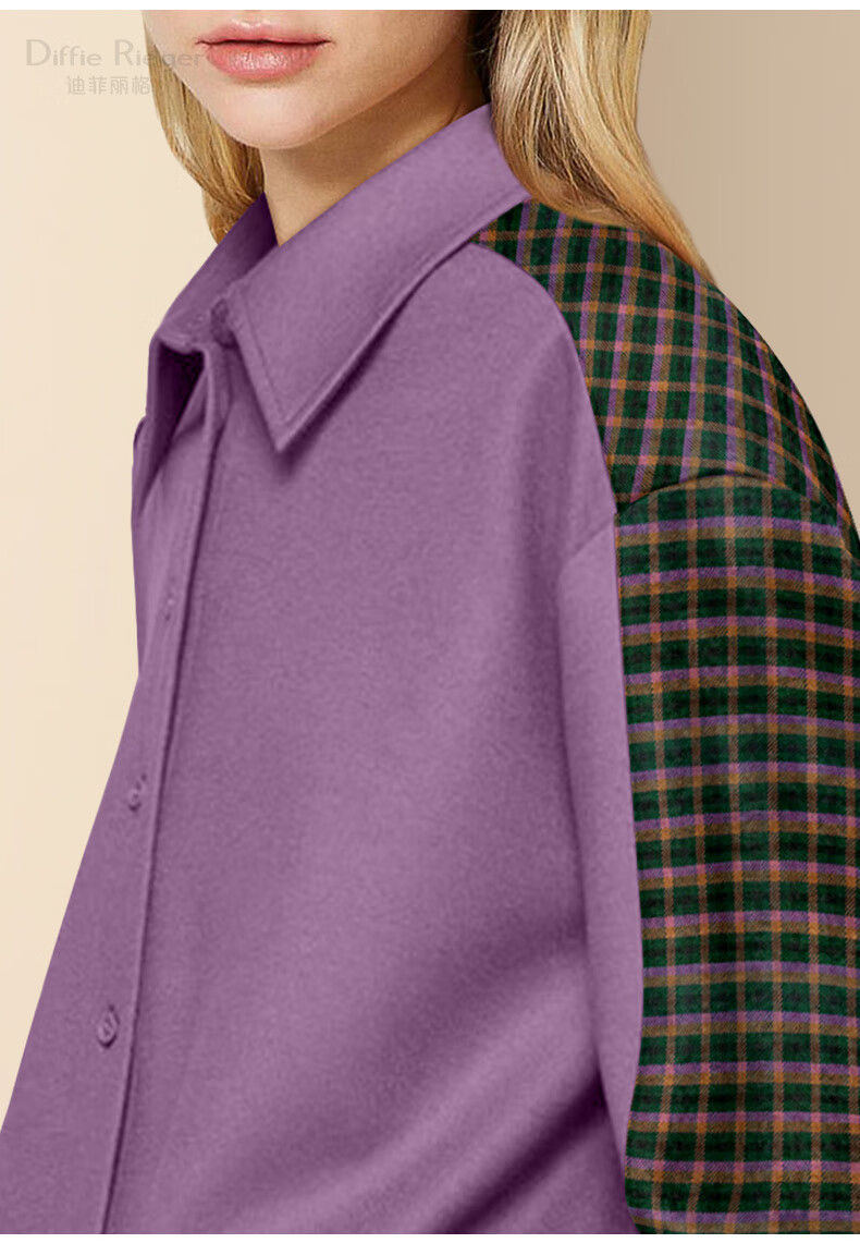 DiFelig American Retro Purple Long Sleeve Shirt Women's 2025 Spring New Loose Temperament Versatile Top Picture Color M