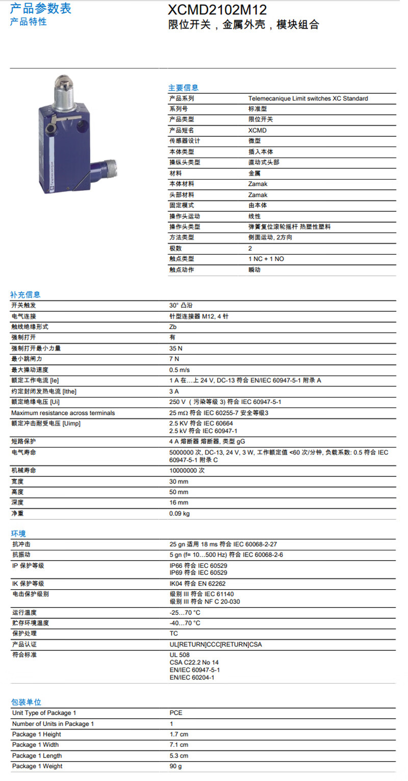 Schneider limit switch XCMD2102M12<unit>delivery within 7 days