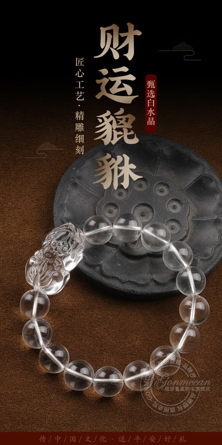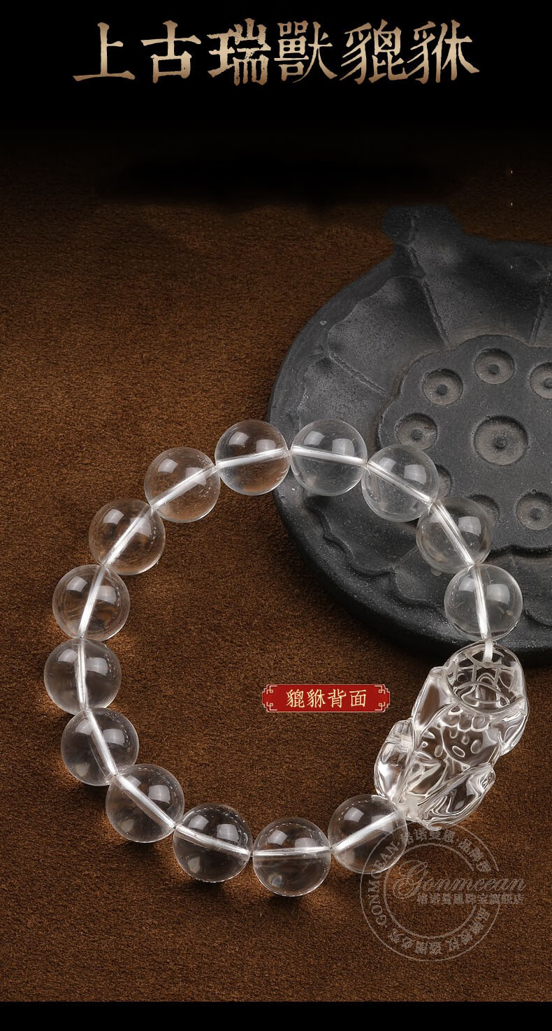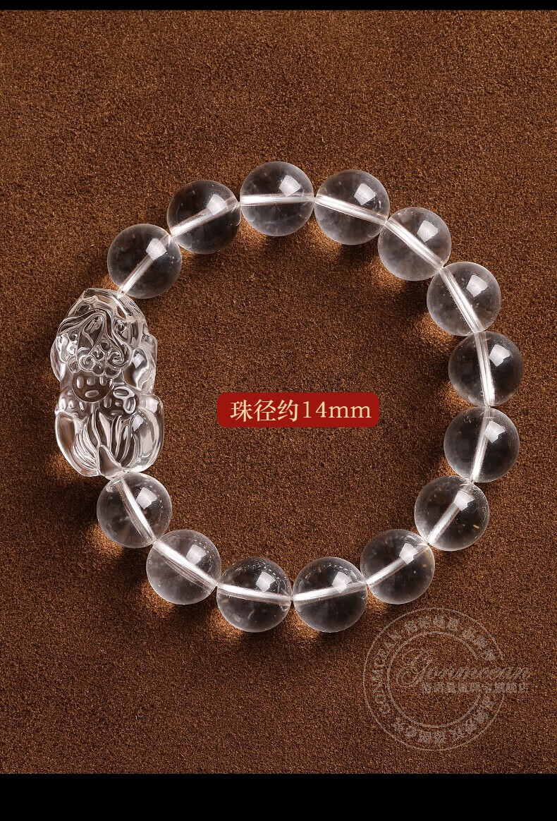 Genomanman White Crystal Pixiu Bracelet Men's Pixiu Bracelet Men's Year of Life Amulet Pichu Gift Beads 14mm