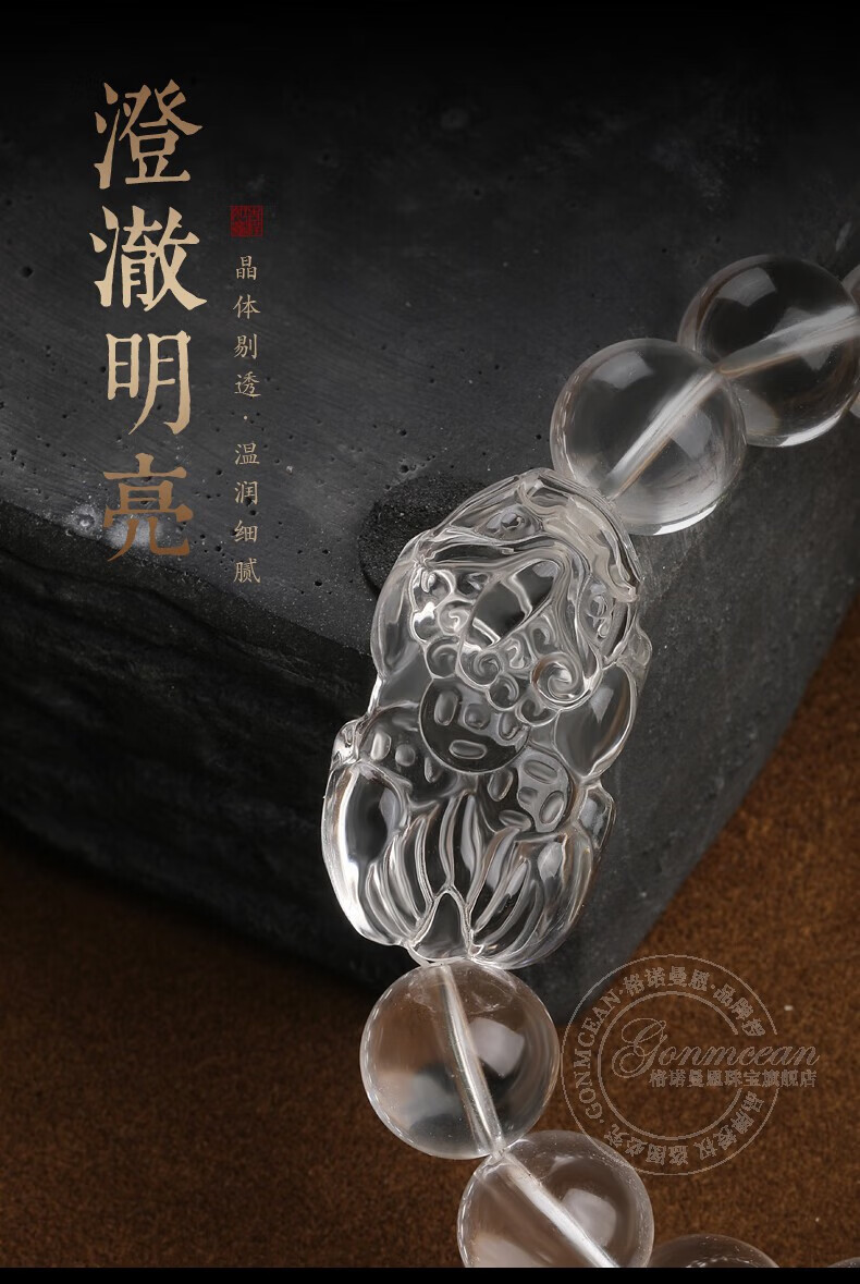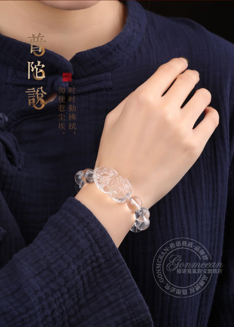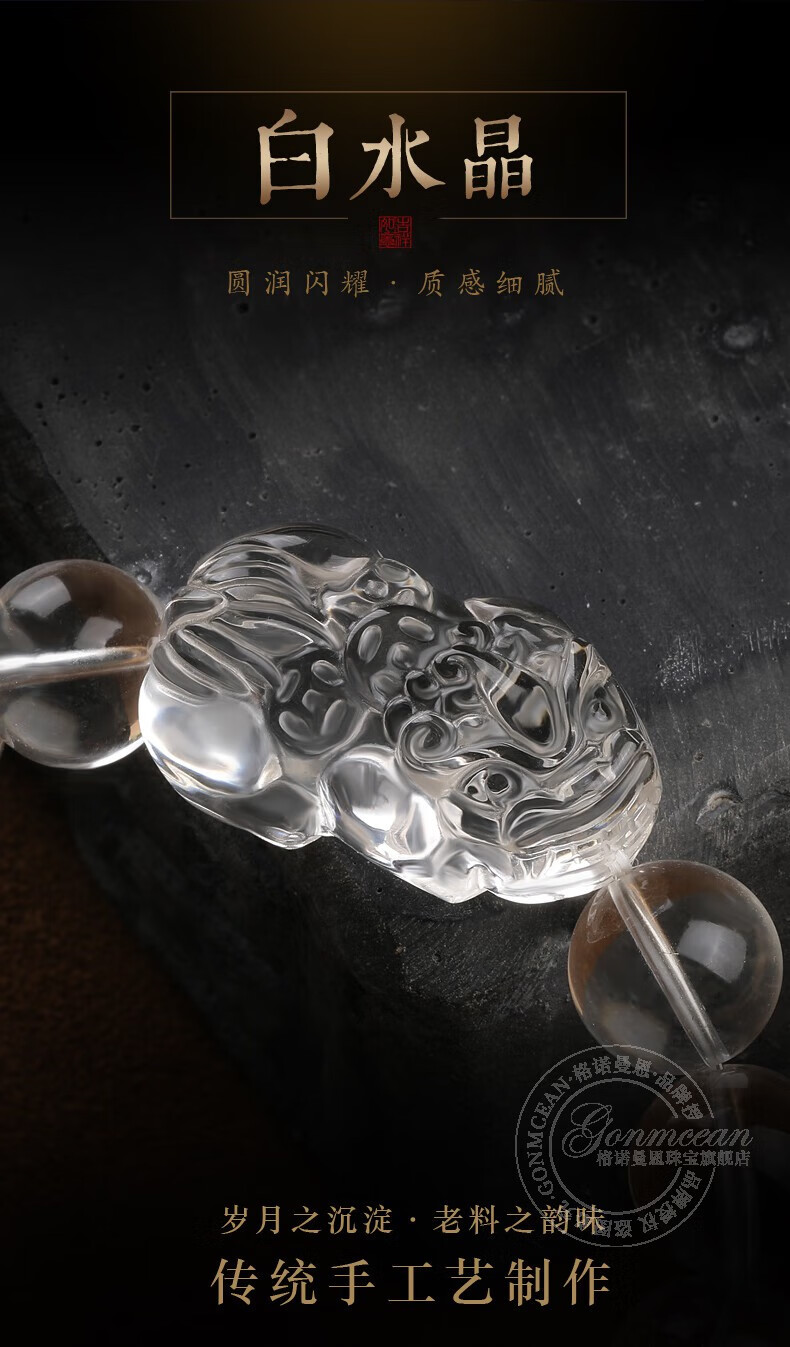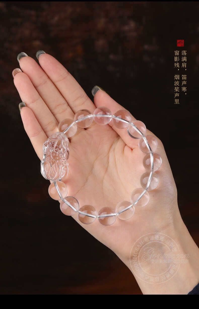 Genomanman White Crystal Pixiu Bracelet Men's Pixiu Bracelet Men's Year of Life Amulet Pichu Gift Beads 14mm