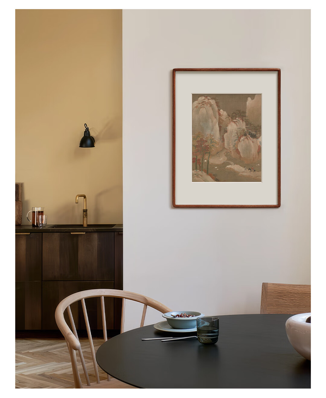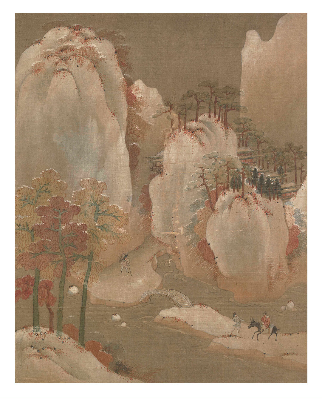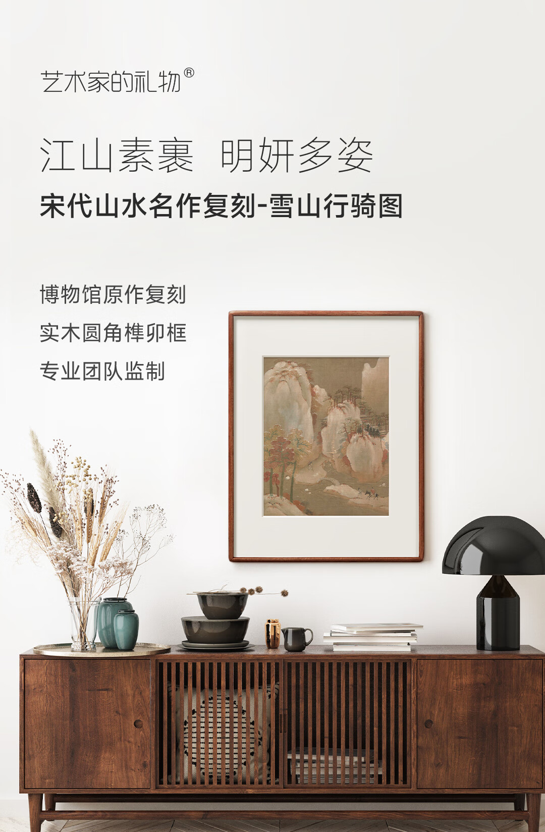 Artist's gift Anonymous Song Dynasty's "Riding in the Snowy Mountains" solid wood frame painting Antique silk painting core Original ultra-clear reproduction print Anonymous Song Dynasty's "Riding in the Snowy Mountains" antique silk with frame 45*35cm