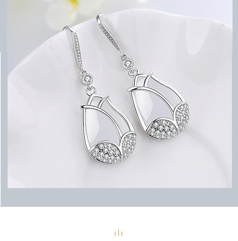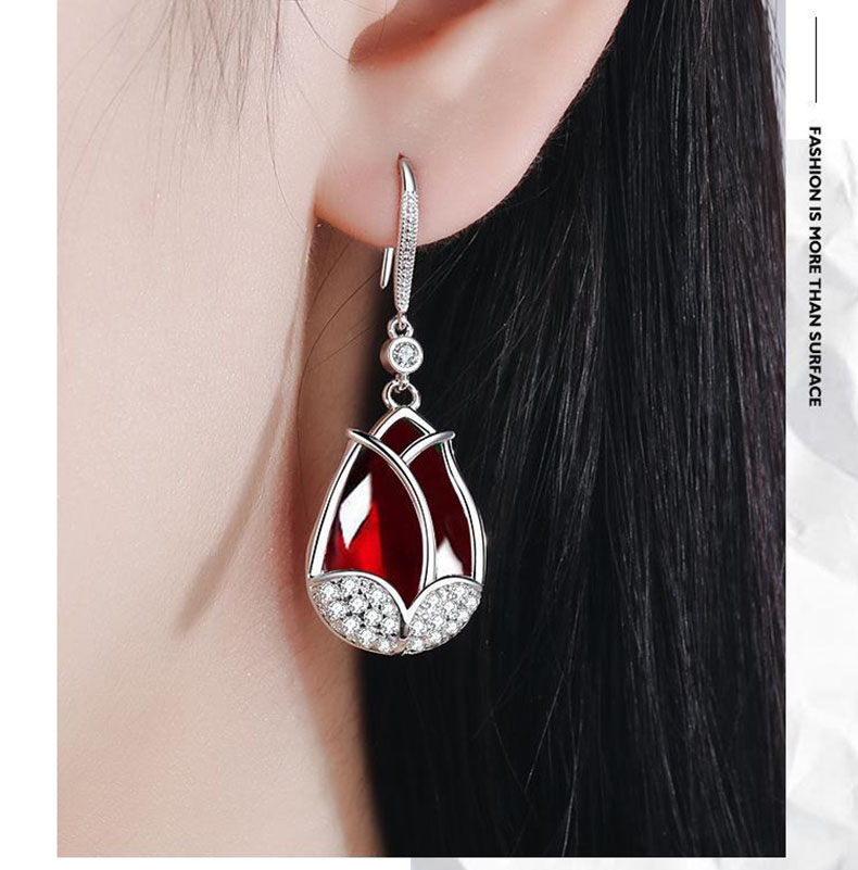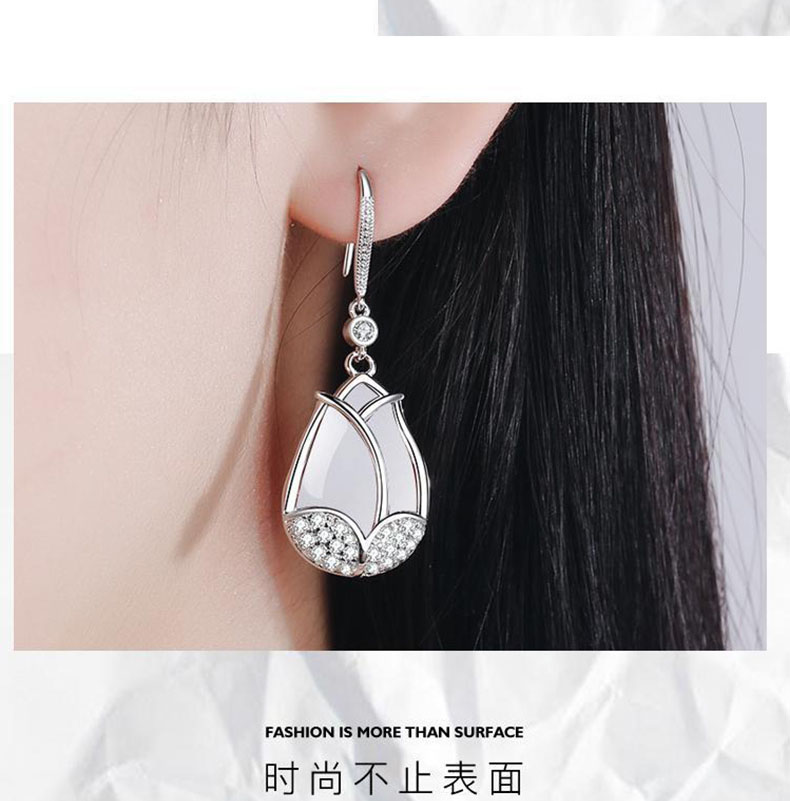 Danbi Earrings for Women New Design Light Luxury Gift Retro Short Earrings Earrings Women's Birthday Gifts for Mom and Girlfriend Tulip White Agate Gold