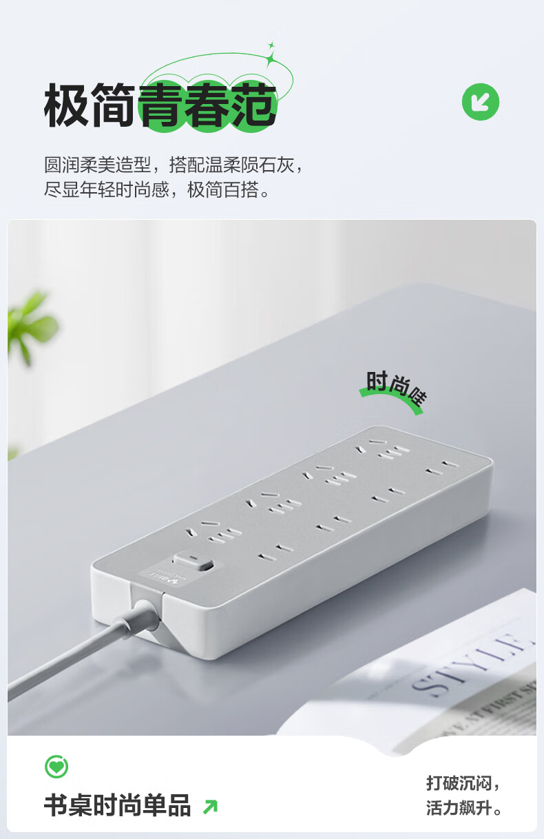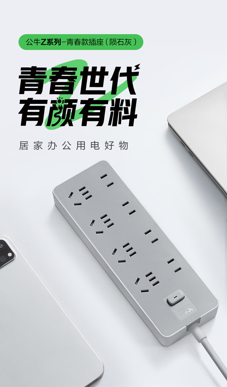 Bull socket desktop plug-in strip with wire plug-in board multi-hole multi-purpose high-power bull plug-in board multi-functional broadcast seat drag strip wire board with new national standard children's anti-electric shock 1.8 meters 3-hole meteorite lime