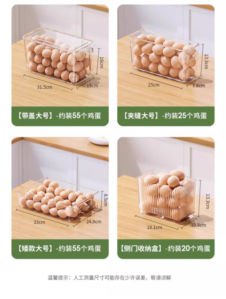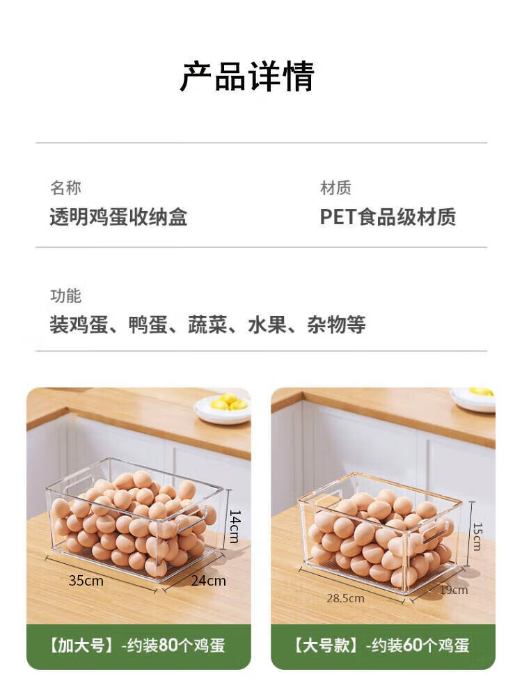 Home KATEI STORY Large Capacity Egg Storage Box Refrigerator Fresh Box Food Grade Refrigerator Storage Box Multi-Function Storage Box Egg Storage Box Without Cover XL 1 Pack