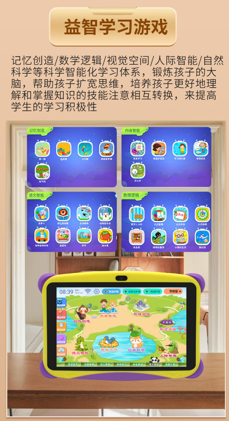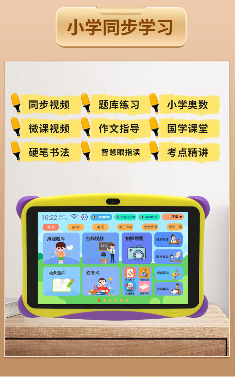 Bachelor's degree children's learning machine, early education machine, tablet computer, baby 1-3-6-12 years old point reading machine, eye protection, home teaching, preschool children, young children, connecting Chinese, mathematics, English, intelligent thinking machine, top version 16+256G, free blue silicone cover (preschool primary school Android
