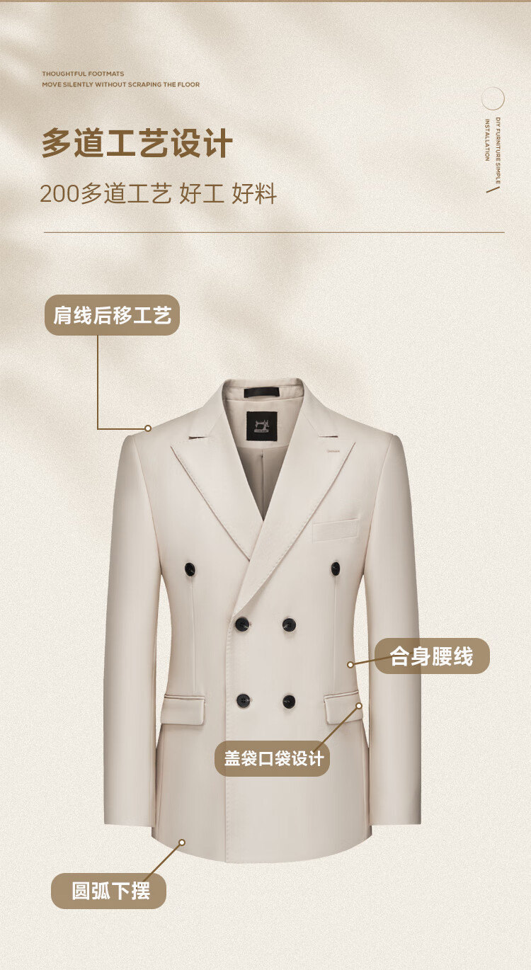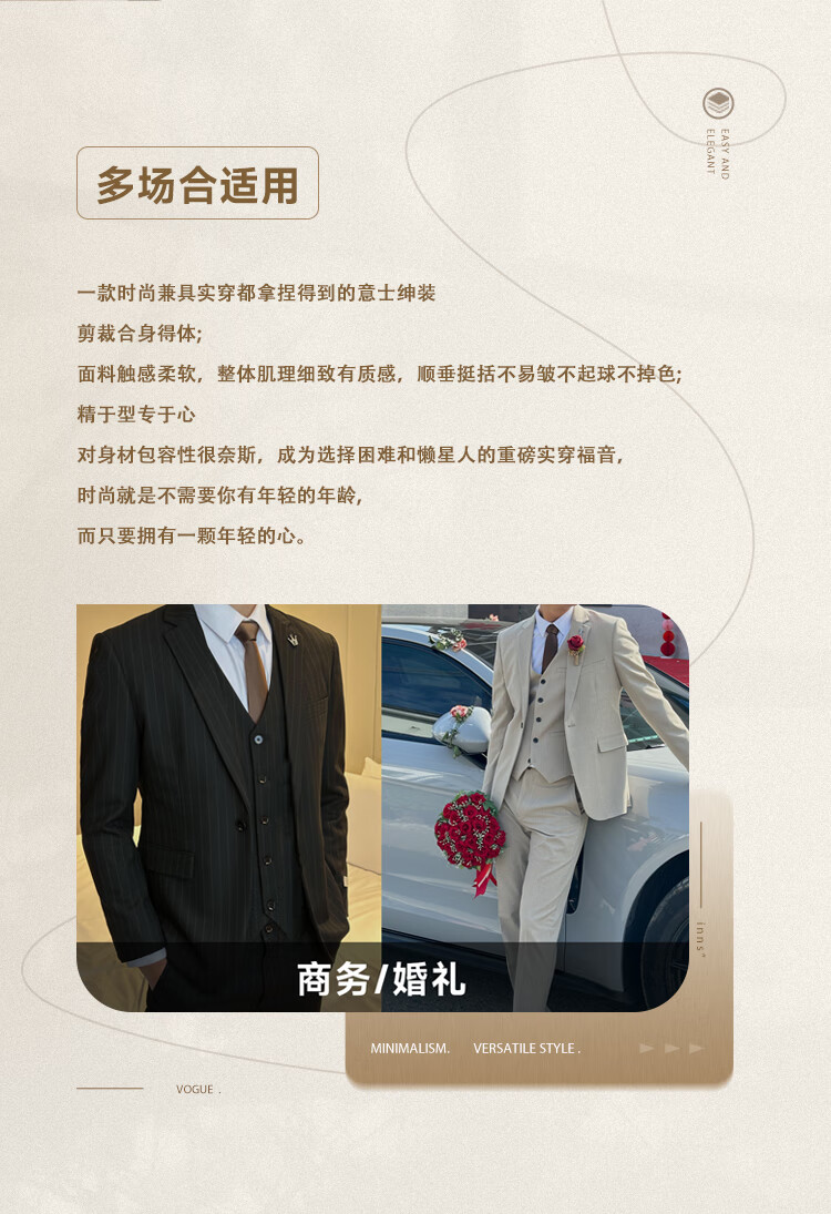 ROMON business casual formal double-breasted British style suit male groom wedding suit three-piece suit dark blue suit + trousers + vest 52/XL