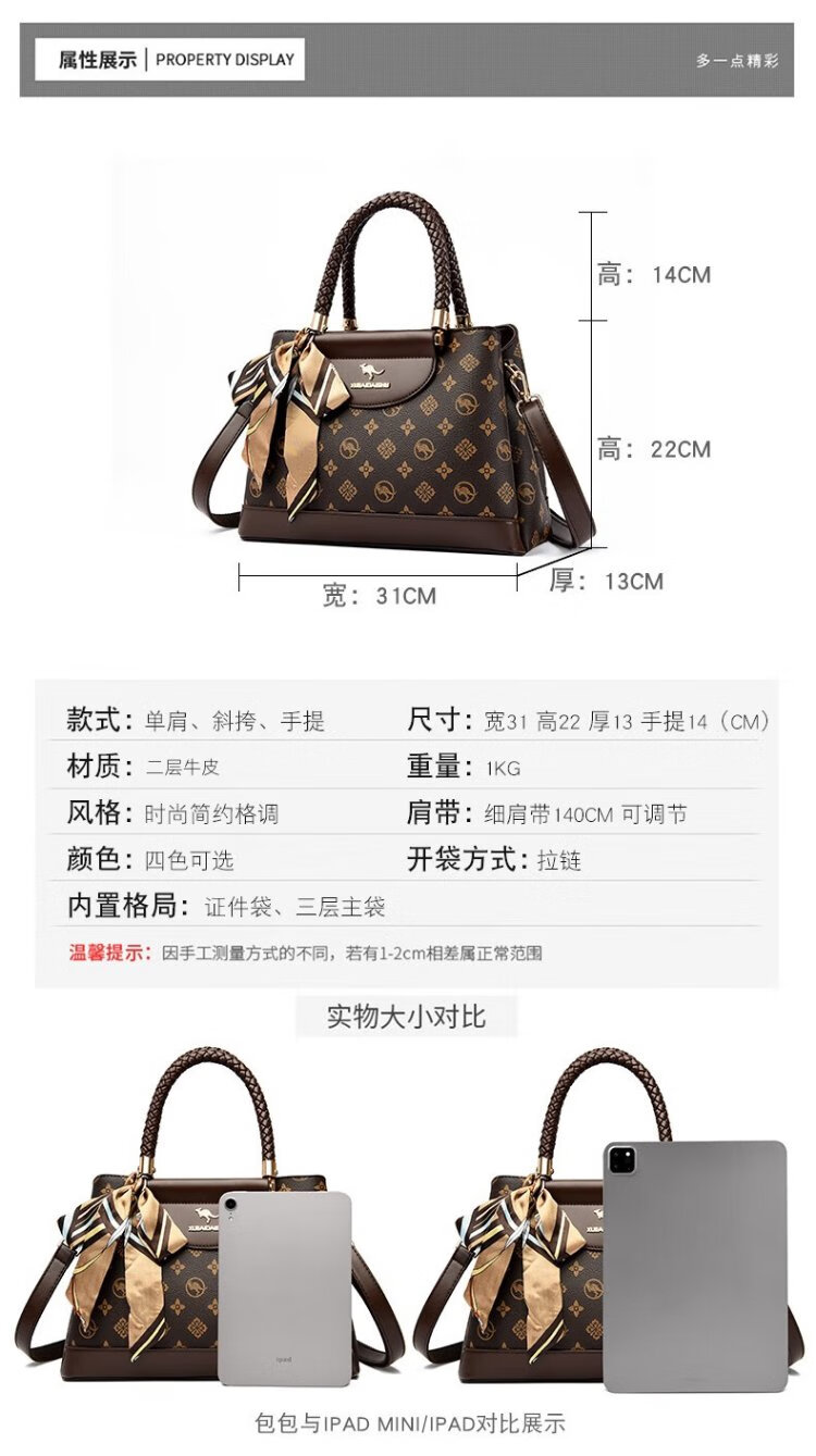 Snow love kangaroo gifts for mothers 30 years old 40 years old wife 50 handbags 2025 new mother bag mother lady bag women's bag brown gift box + silk scarf + hand bag card bag