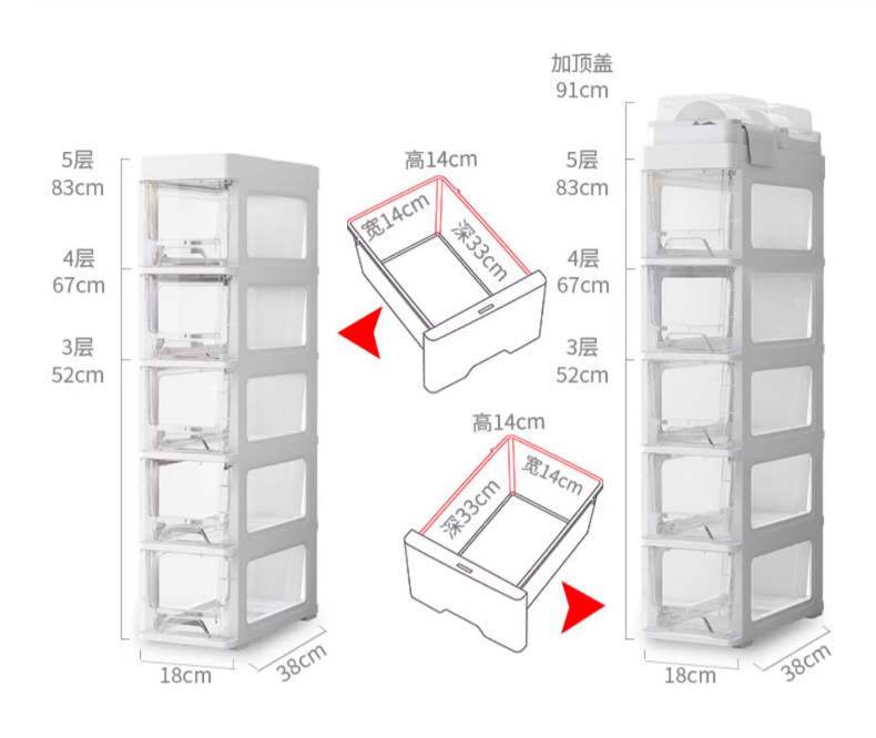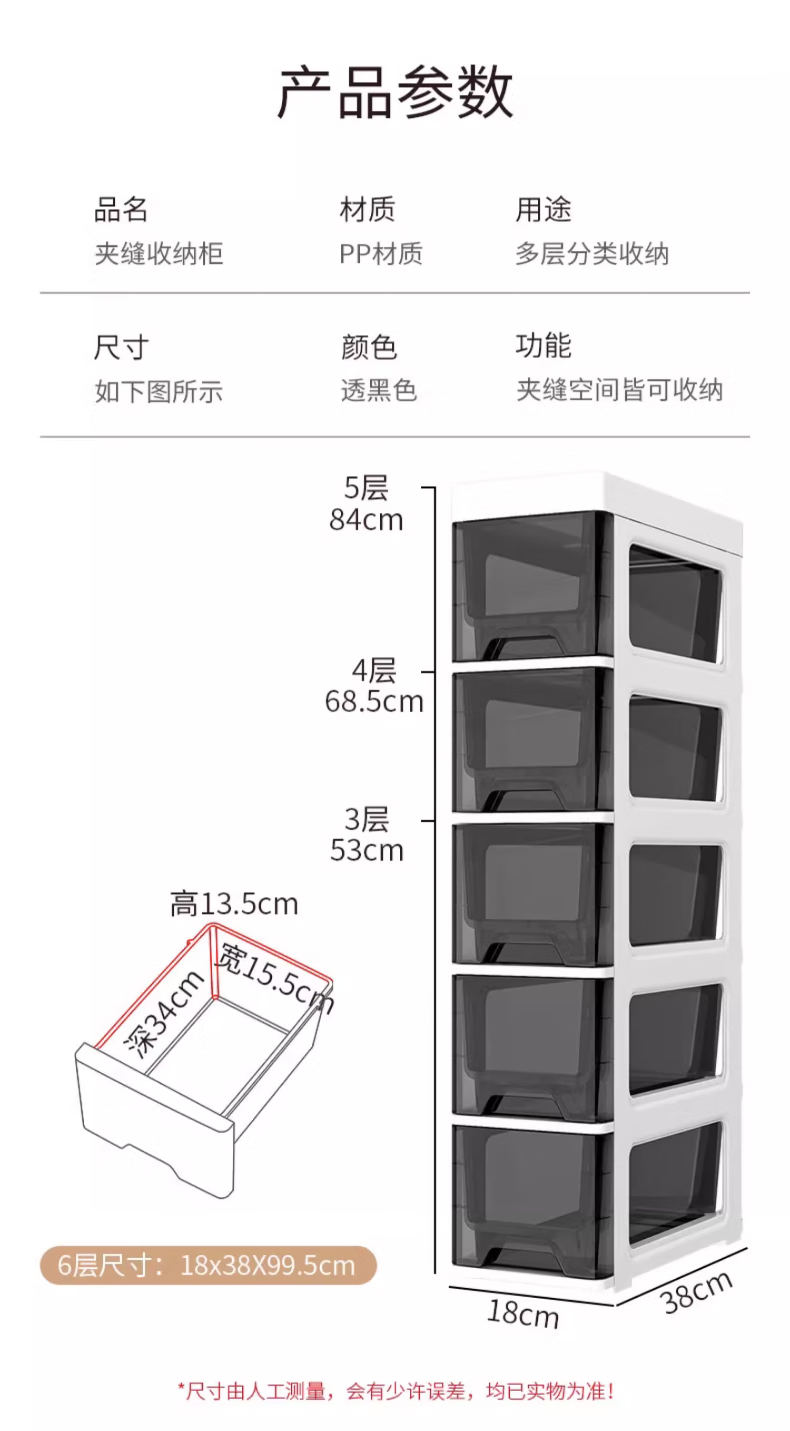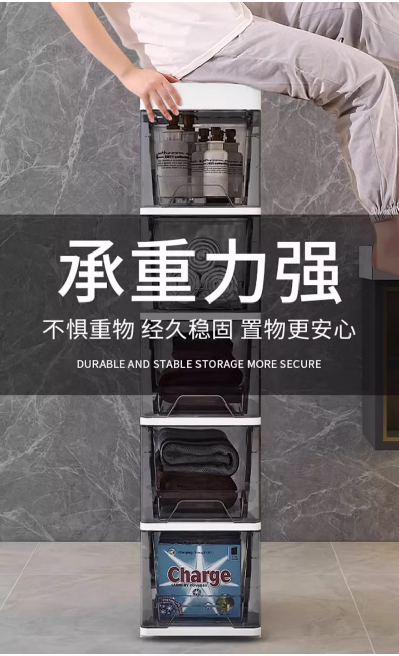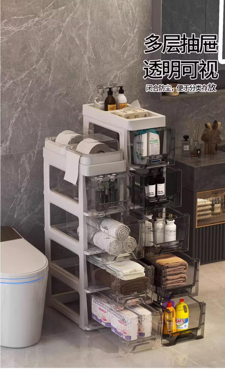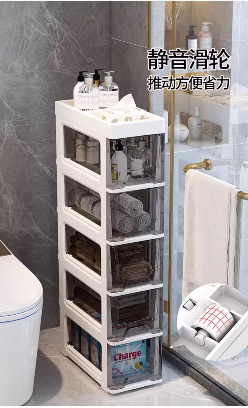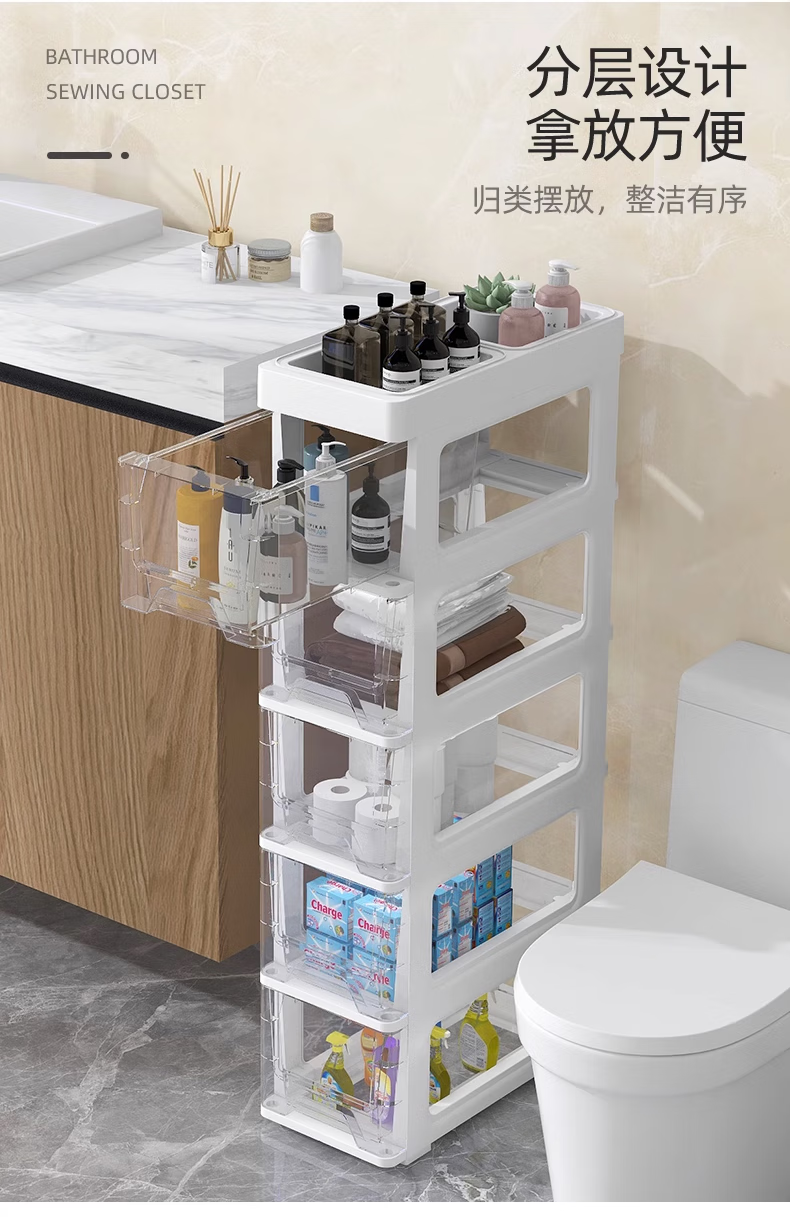 Nafenai 18/25/35cm bathroom gap storage cabinet drawer-type bathroom narrow gap storage cabinet transparent storage cabinet 18 wide transparent black drawer can store things on the top five layers