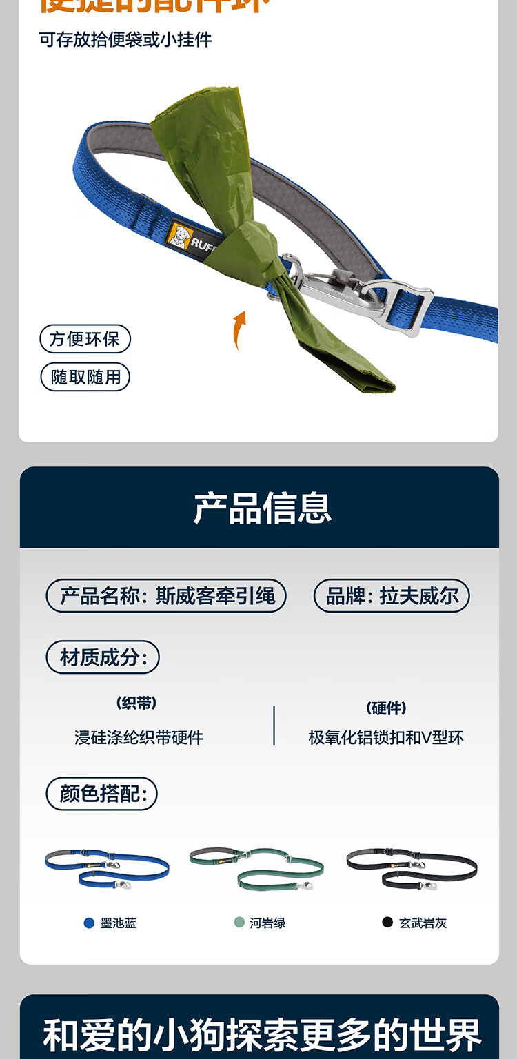 Lovewell Swike traction dog leash dog leash large dog leash multi-functional dog leash basalt gray