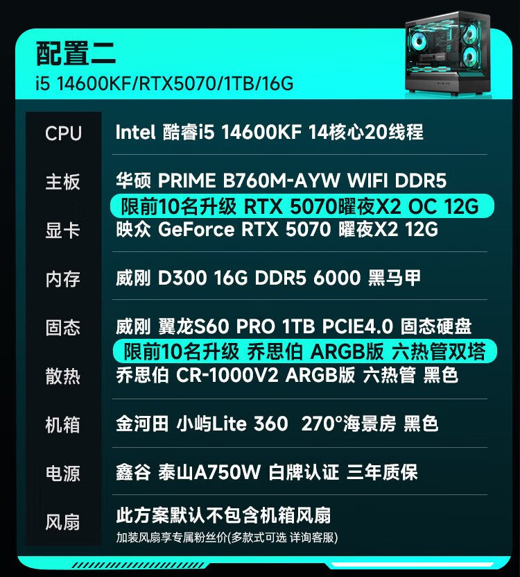 Inno3D RTX5060Ti host i5 14600KF/RTX5070Ti/5070 Delta gaming desktop computer complete DIY assembly machine AI rendering desktop host 14700KF+RTX5070Ti丨With four