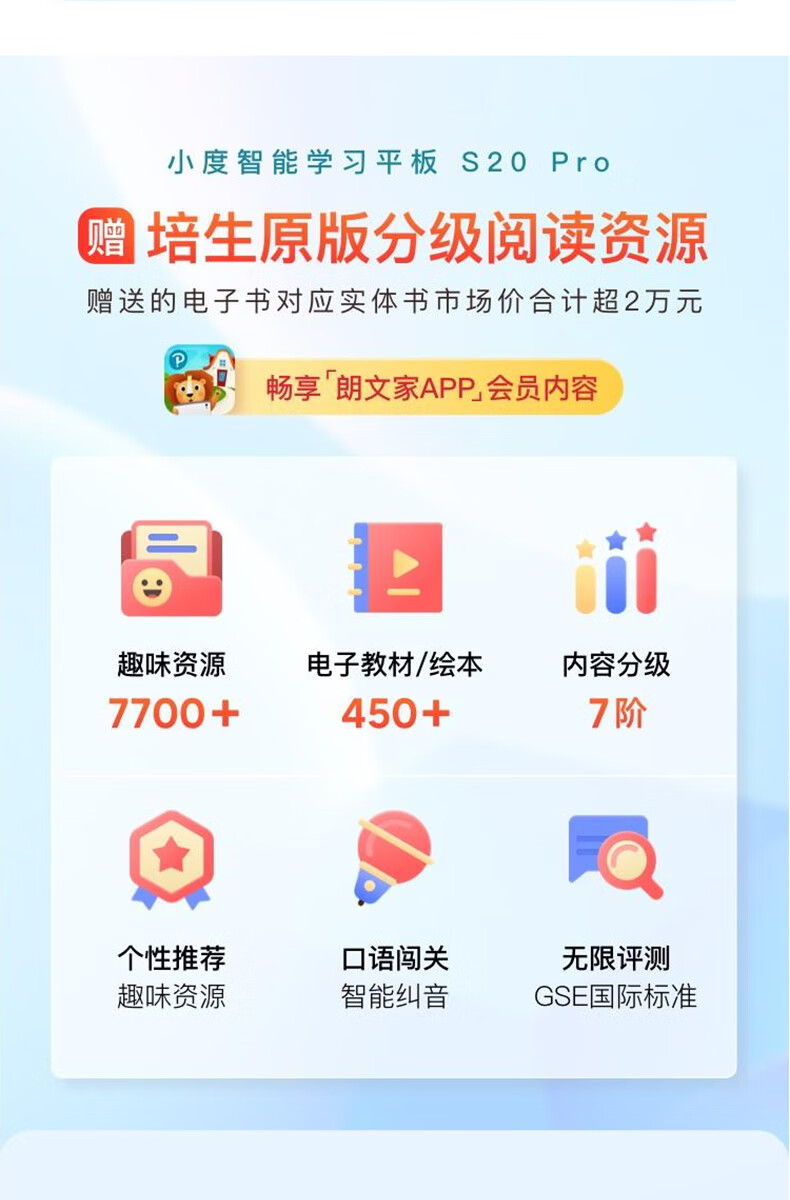 Планшетная обучающая машина Xiaodu S20Pro. 10,1-дюймовая обучающая машина Baidu для начальной, средней и старшей школы. 4 + 256G детская машина для чтения по английскому языку S20 Pro поставляется с клавиатурой, защитным чехлом, подставкой и умным глазом.