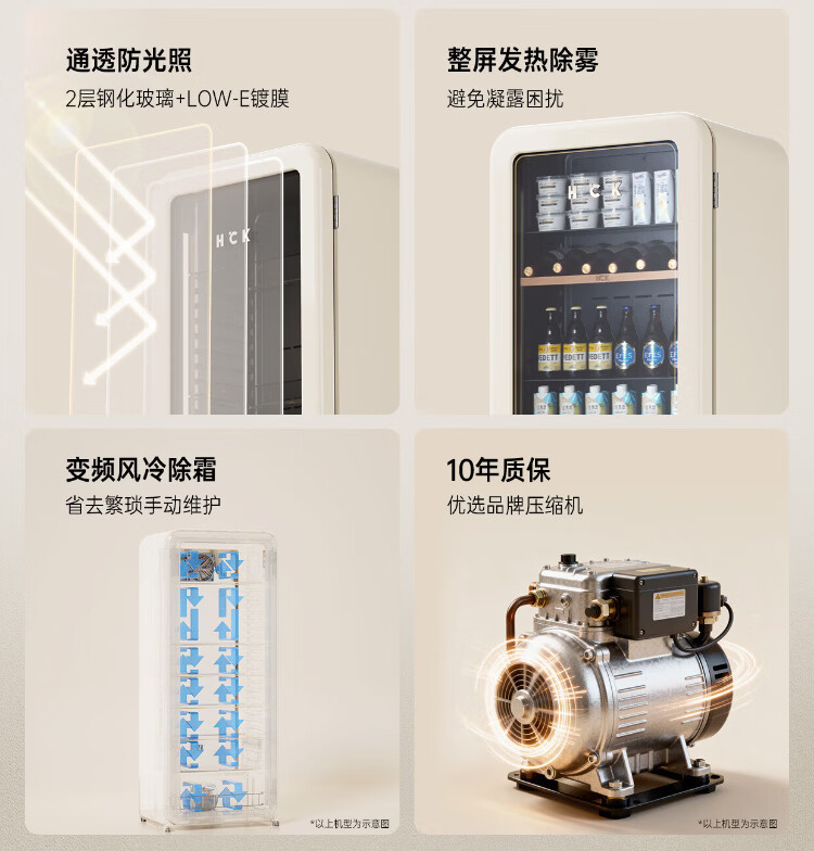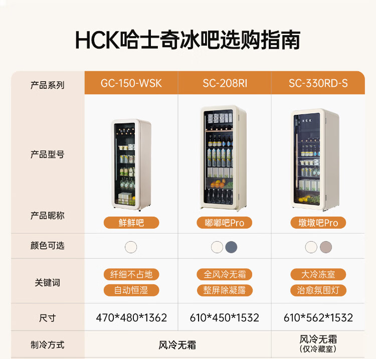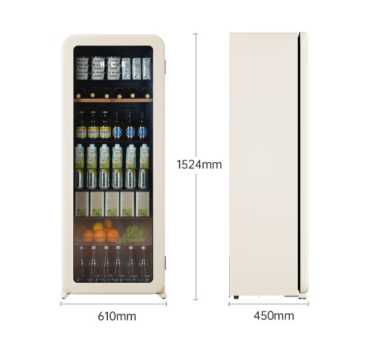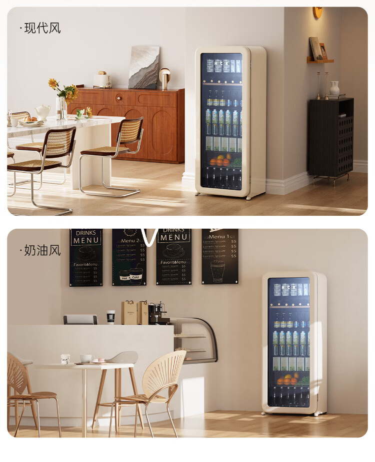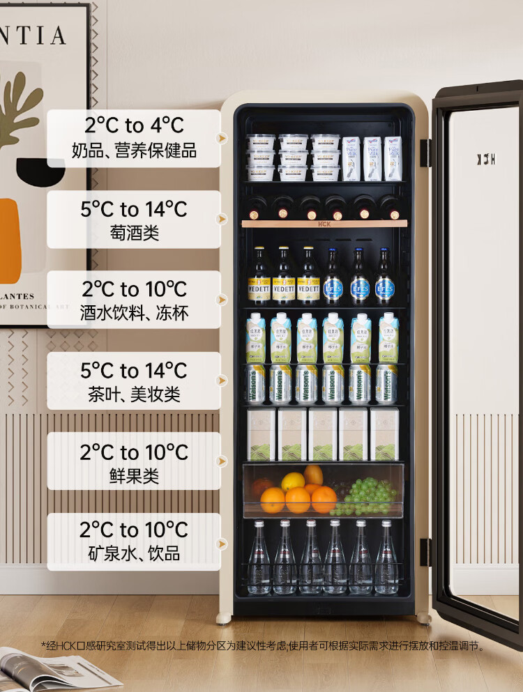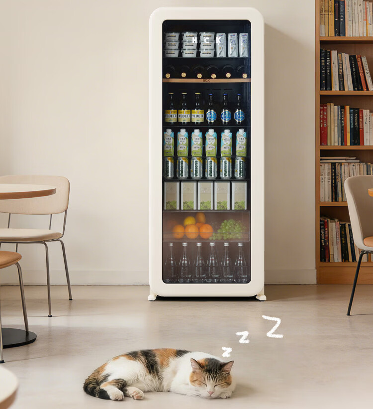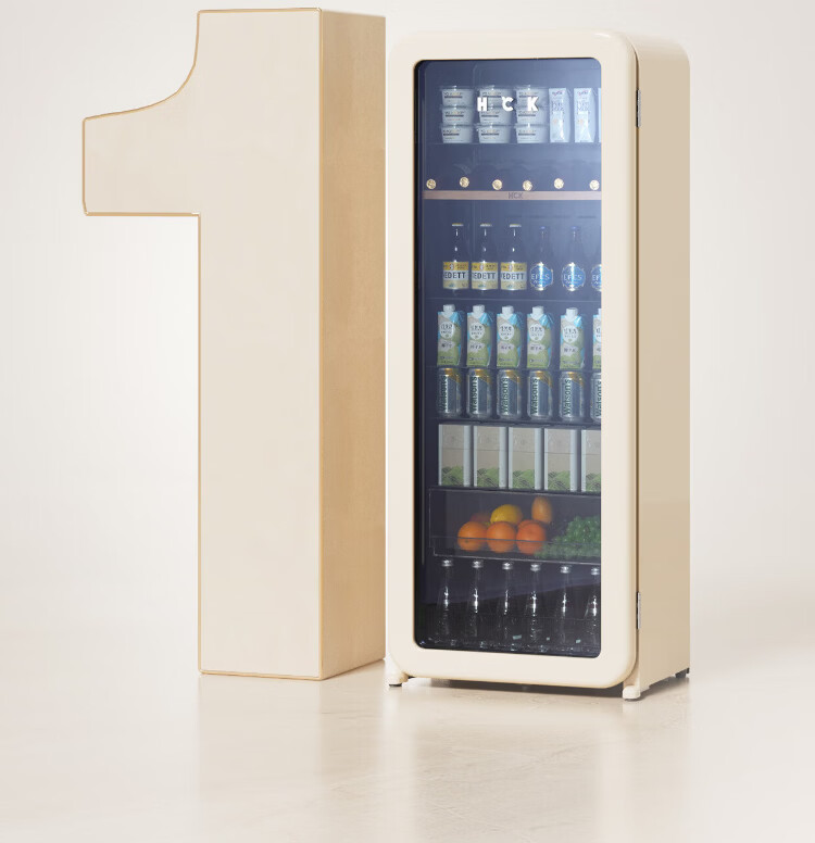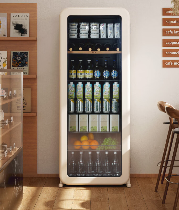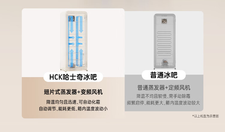 HCK Husky National Subsidy 212L Refrigerator Freezer Embedded Ice Bar Retro Wine Storage Cabinet First-Class Rental Household Fully Refrigerated Upright Freezer SC-208RI Air-cooled Frost-free Milk Tea Color 212L