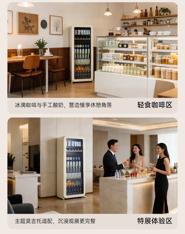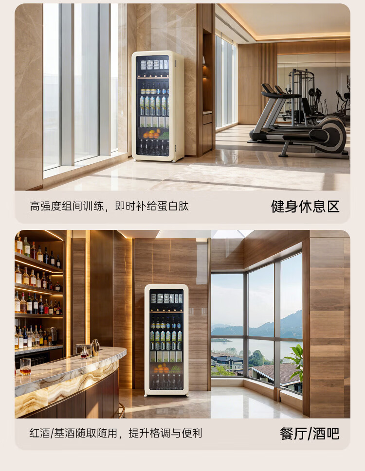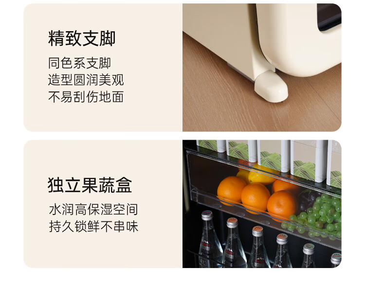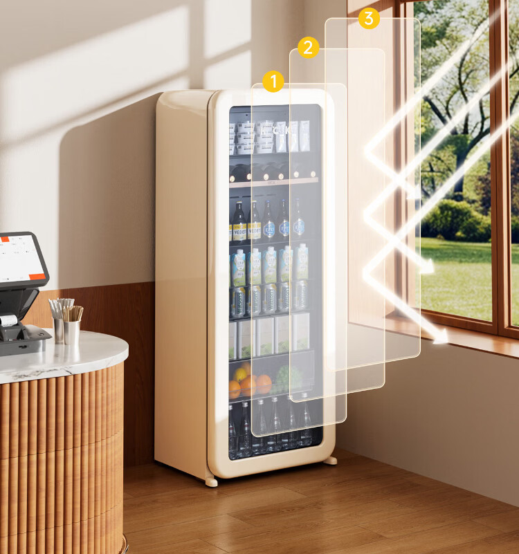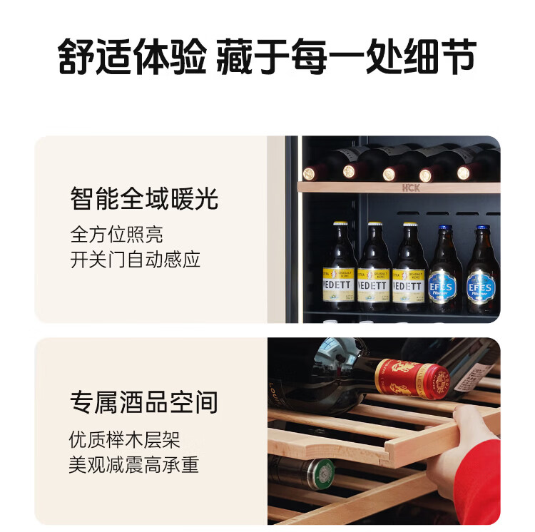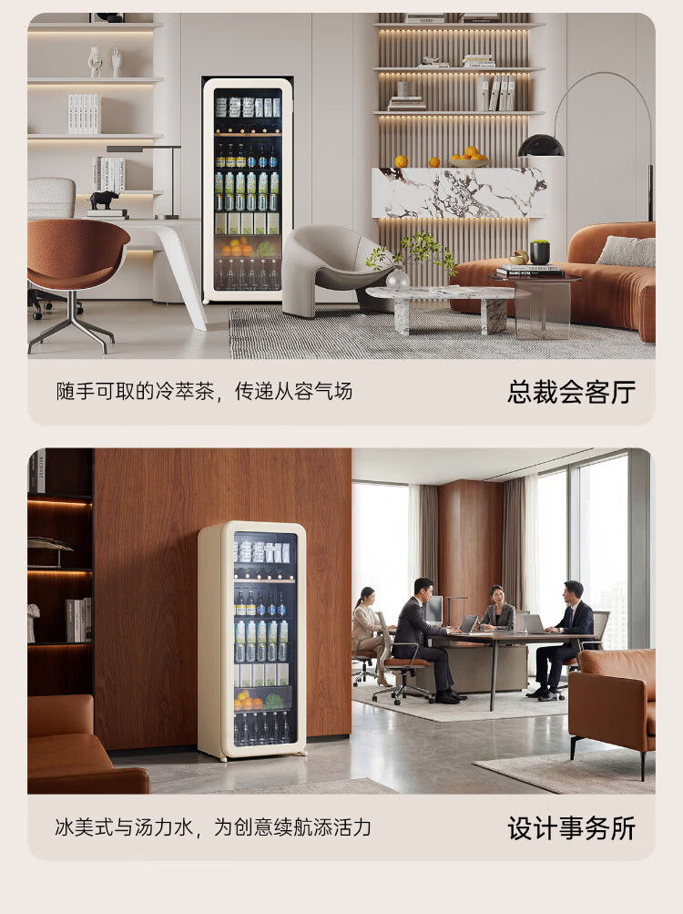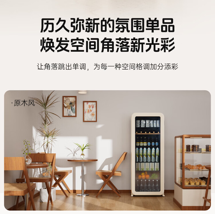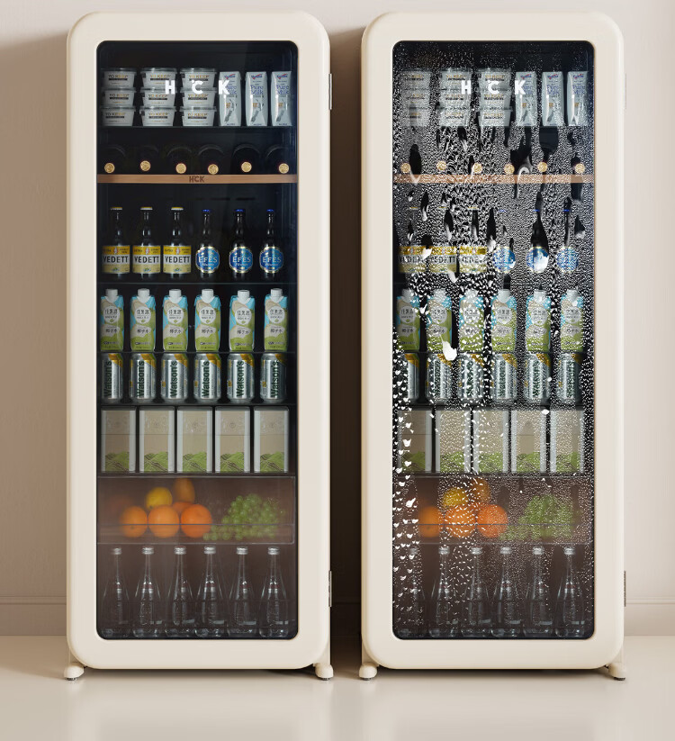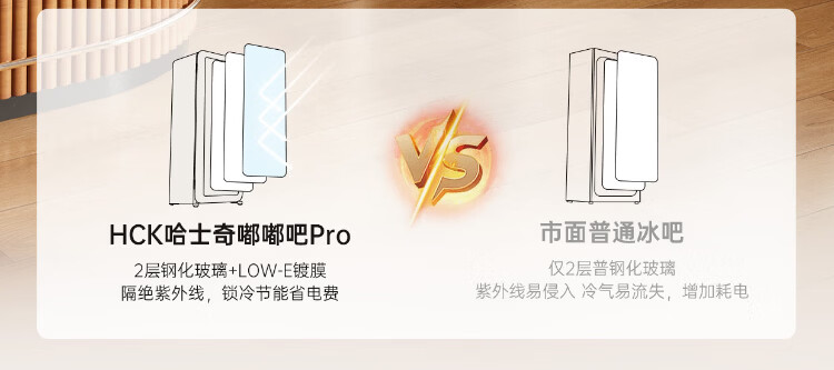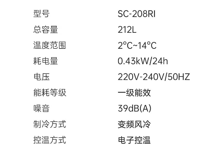 HCK Husky National Subsidy 212L Refrigerator Freezer Embedded Ice Bar Retro Wine Storage Cabinet First-Class Rental Household Fully Refrigerated Upright Freezer SC-208RI Air-cooled Frost-free Milk Tea Color 212L