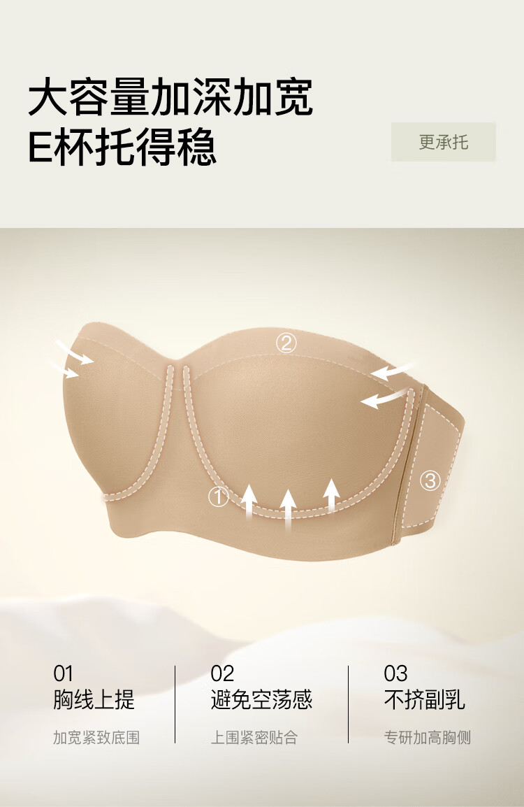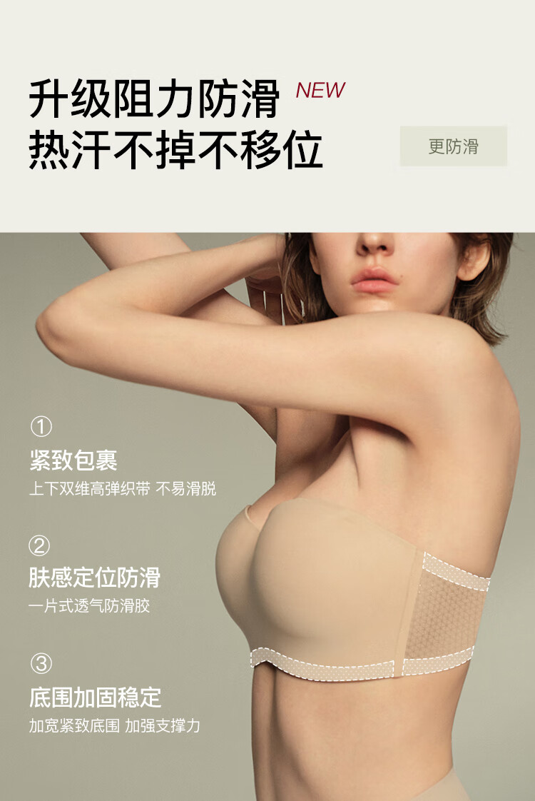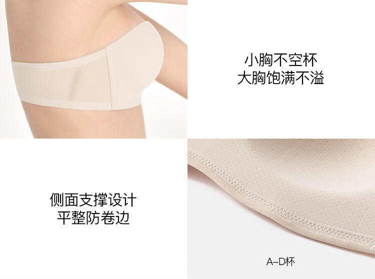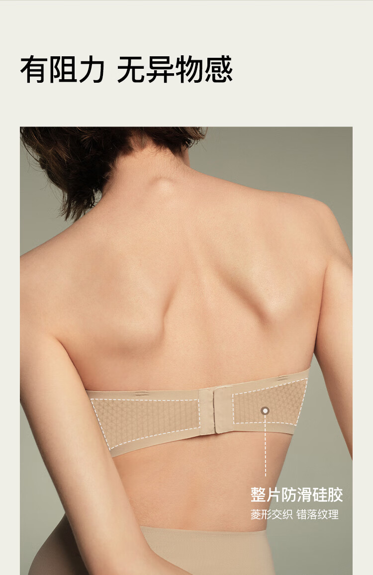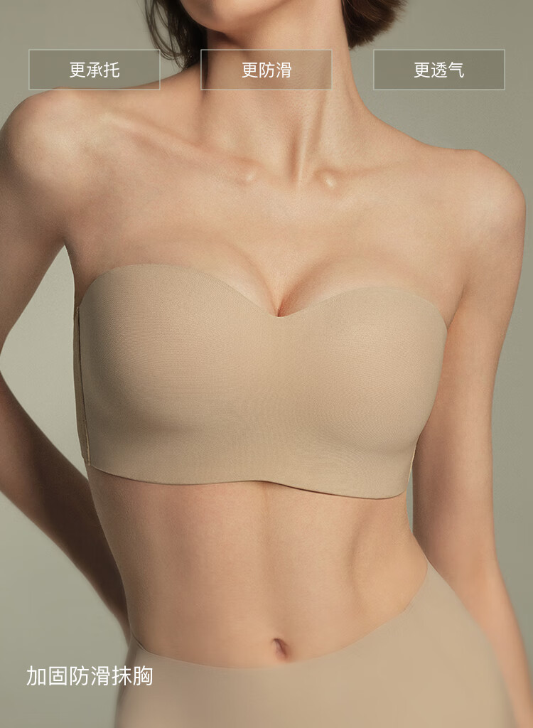 Ubras Reinforced Non-Slip Mesh Breathable Bandeau Strapless Bra Seamless Beautiful Back Underwear Women's Invisible Foundation Oatmeal Milk Color L (80A 80B)