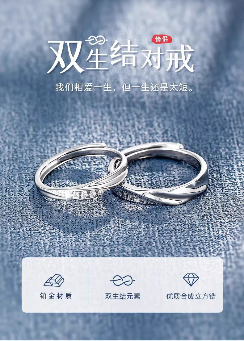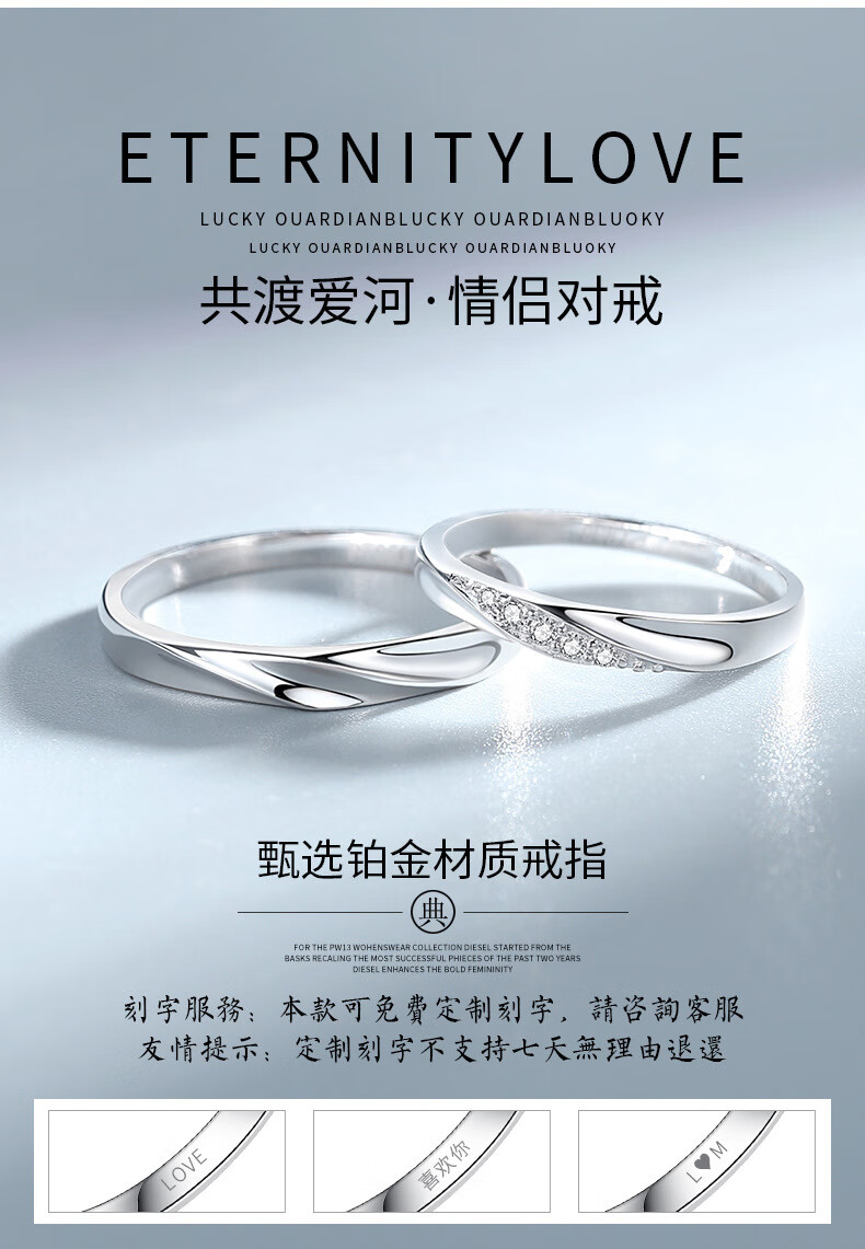 Fred Leighton platinum couple rings for men and women, adjustable engagement, proposal, marriage, and birthday gift for girls. Light luxury 925 pairs of rings can be shipped separately to other places.