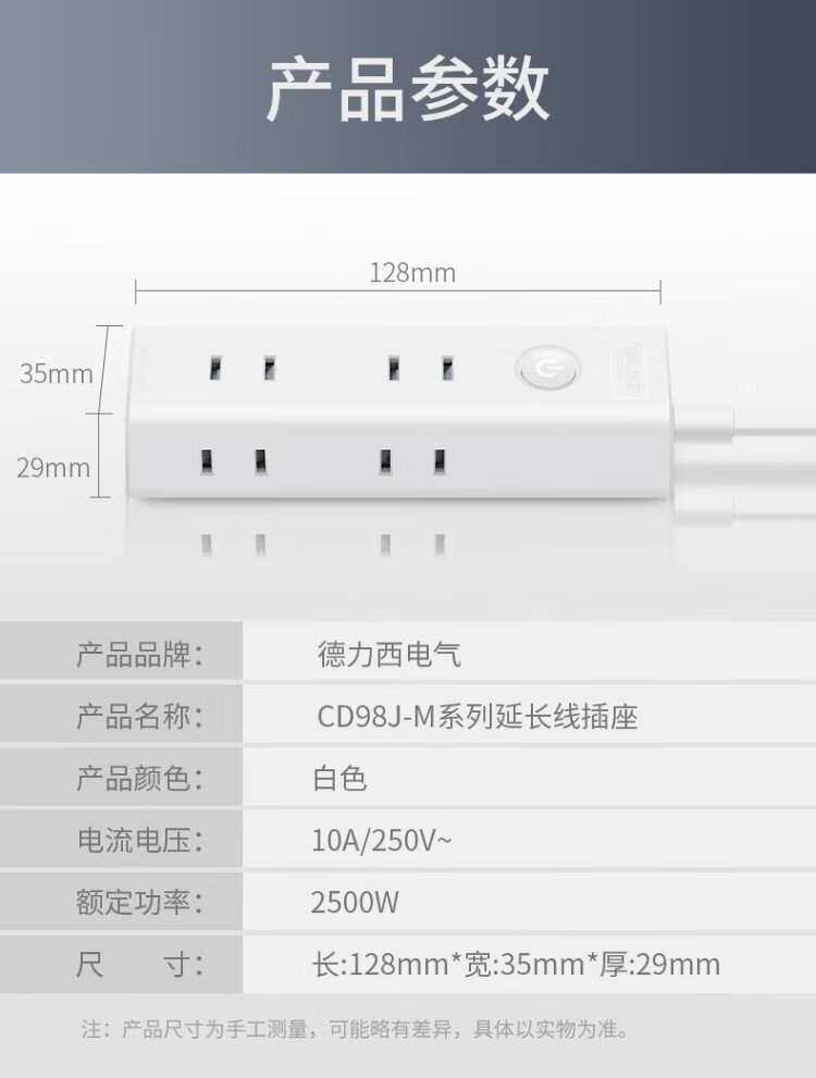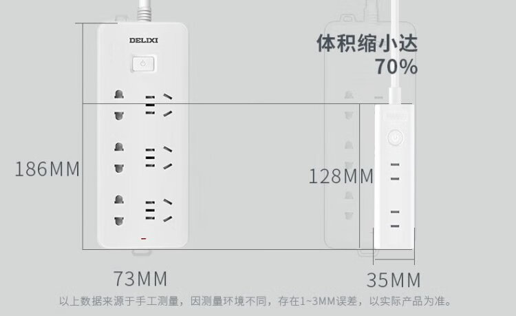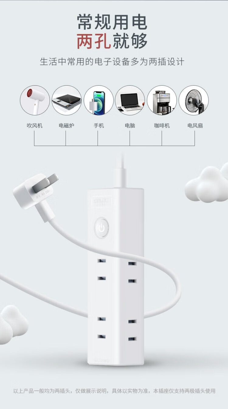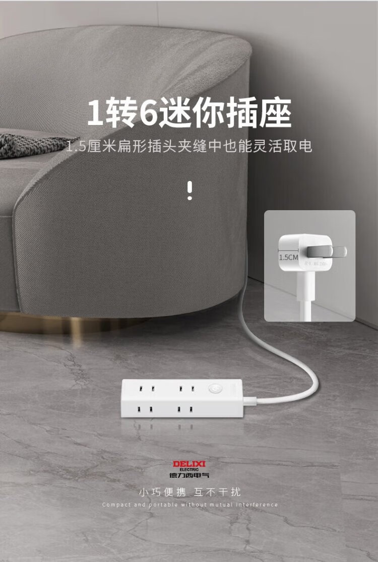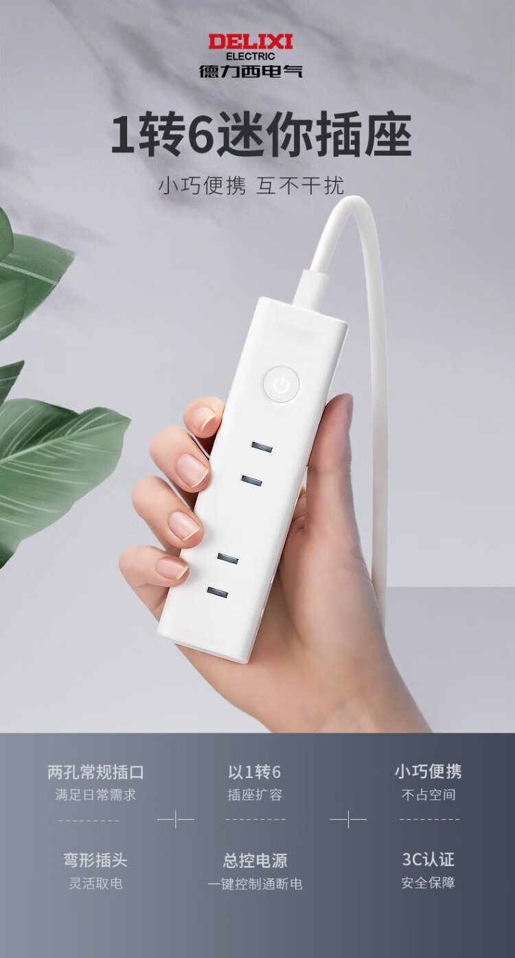 Delixi mini socket expansion one-turn multi-plug converter travel portable power strip multi-hole multi-purpose mini with cable strip plug one-turn six/6 positions two holes/0.6 meters