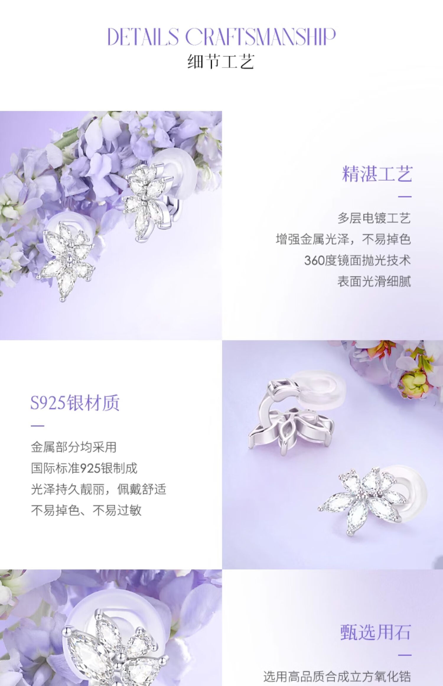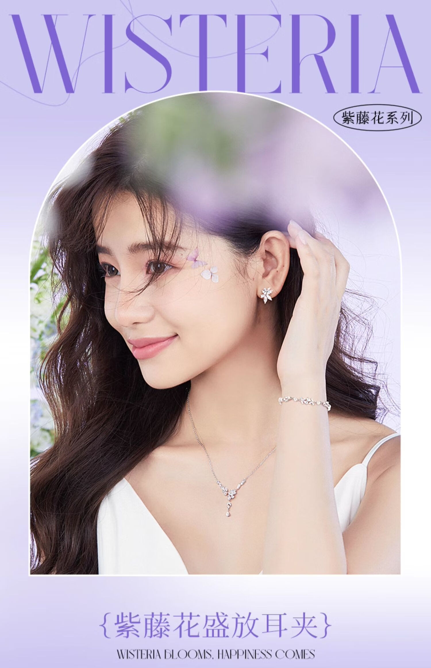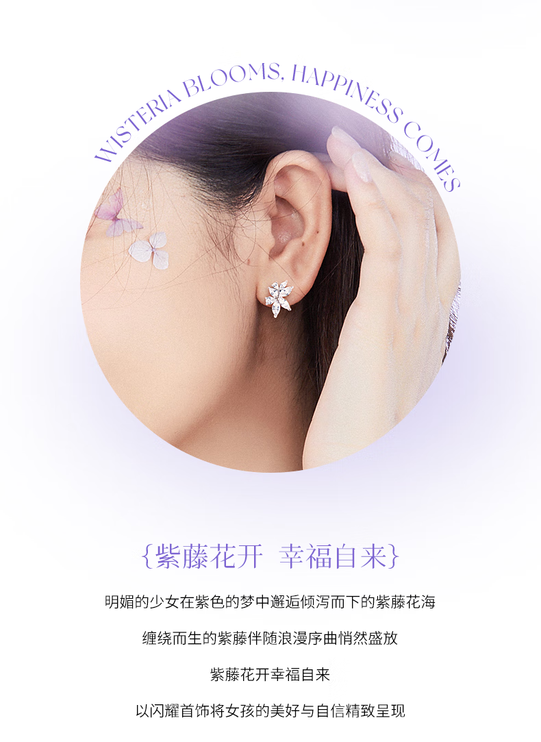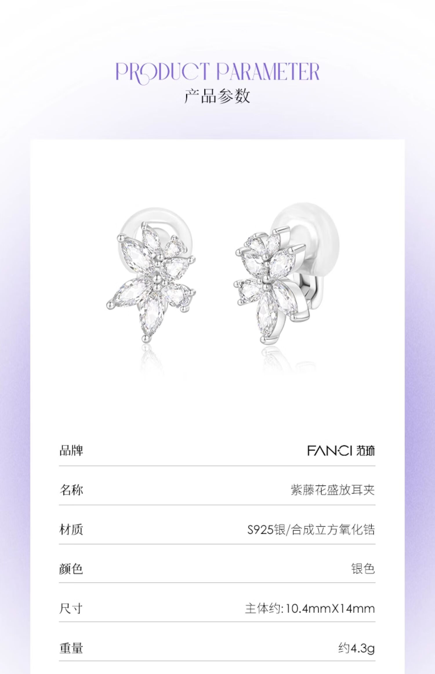 Fanci (Fanci) Wisteria Flower Series Wisteria Flower Blooming Ear Clips Women's Fashion Niche Earrings Mom Wisteria Flower Blooming Ear Clips