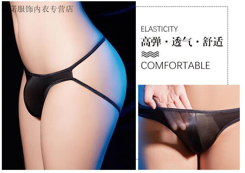 Tang Yu Meng Nude Underwear Fully Transparent Men's Hollow, Thin, Comfortable, Glossy, Extremely Tempting Breathable Stretch Mini Thong Black 1 Pair One Size
