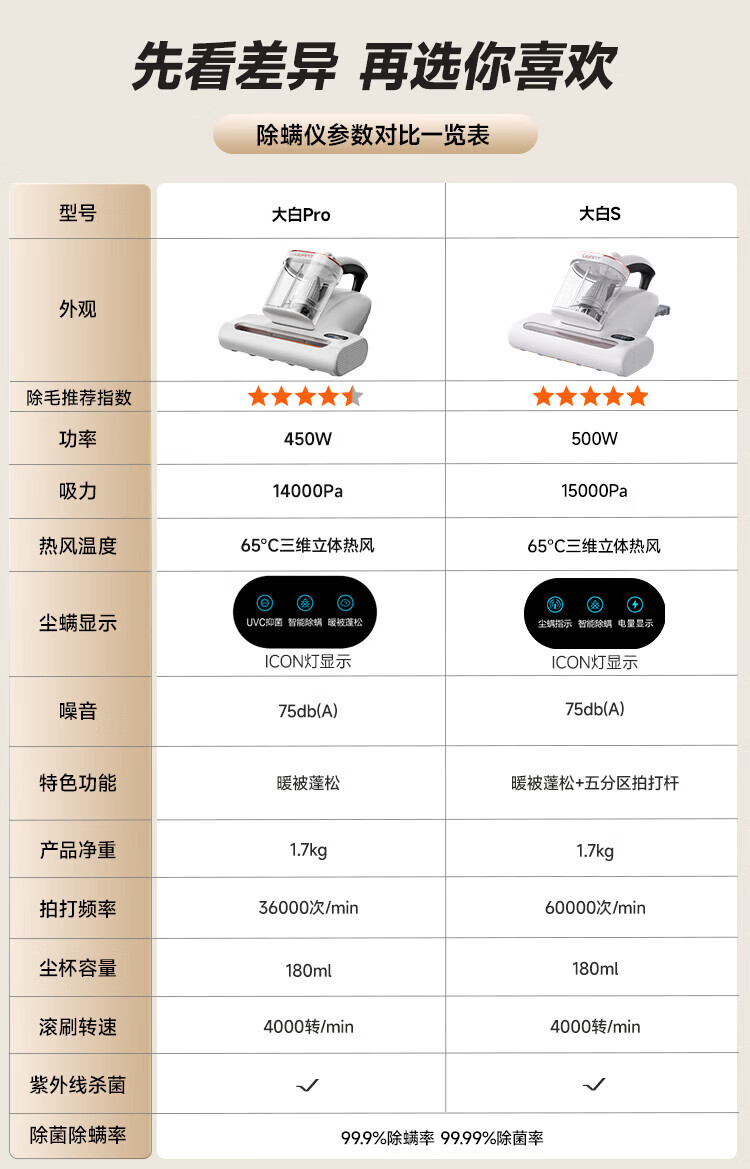 UWANT Youwang mite removal instrument home bed treasure double cup dust mite separation bed vacuum cleaner ultraviolet sterilization ultrasonic mite removal vacuum mite removal all-in-one machine artifact Dabai CM2306 (hot air strong model)