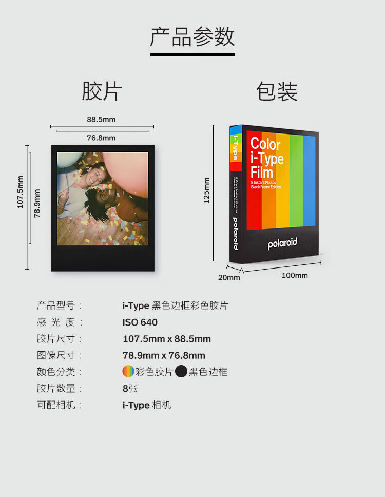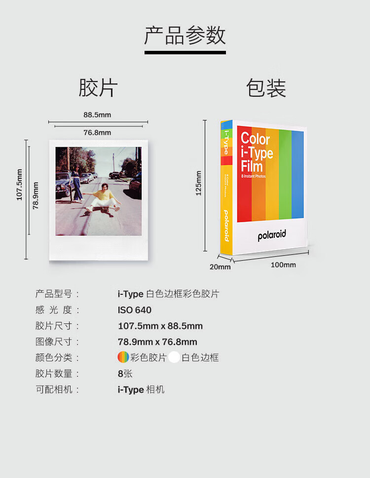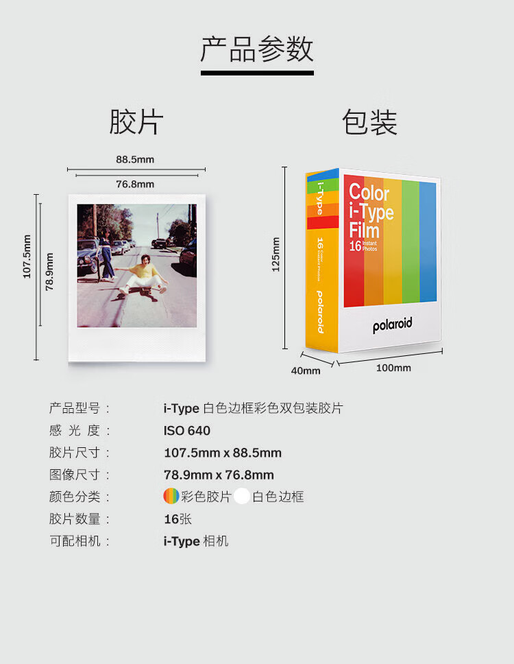 Polaroid (Polaroid) While supplies last Polaroid photo paper i-Type color film Retro single-shot photo paper Applicable to NOW/NOW+/I-2/Lab models White frame color (2 packs of 16 photos) 6009 Applicable to i-type models