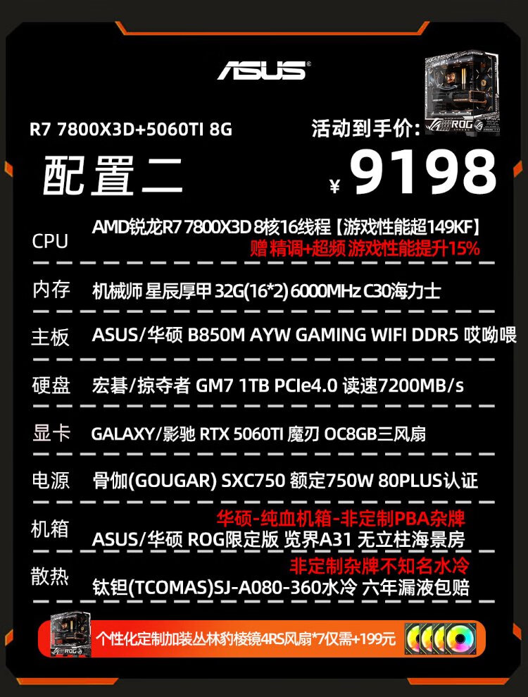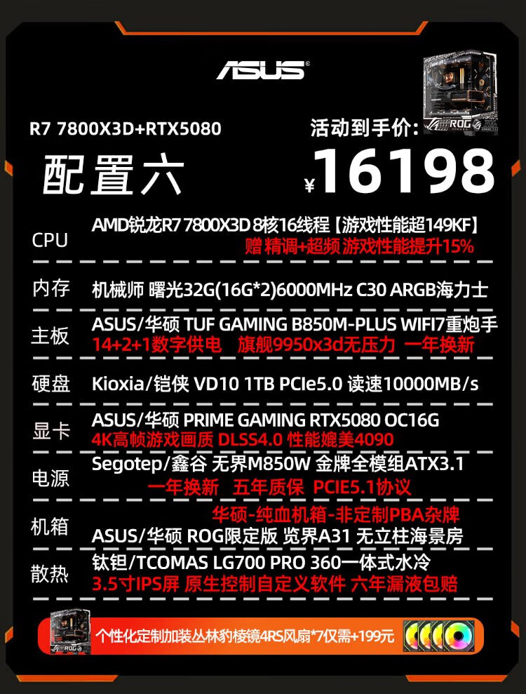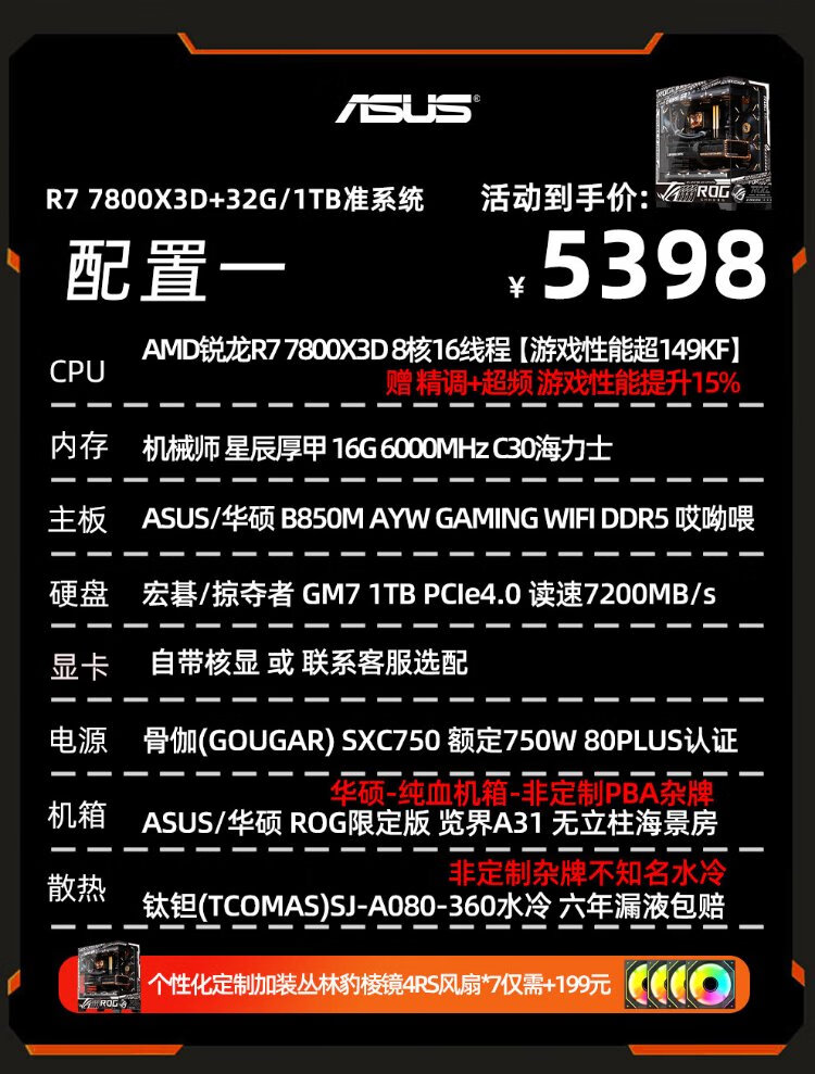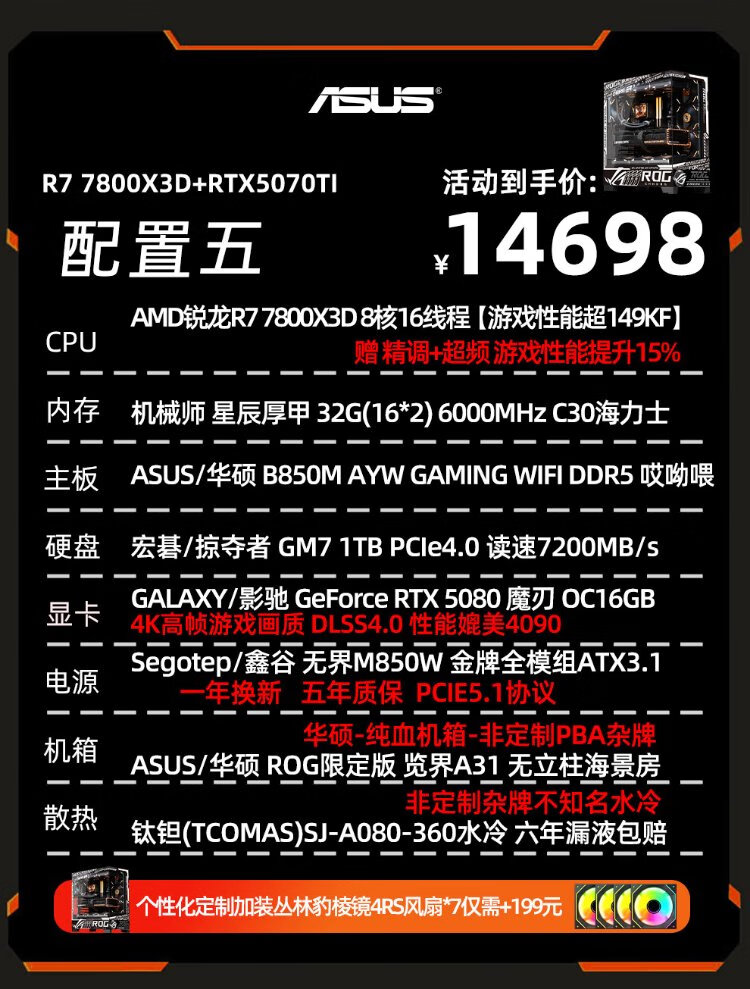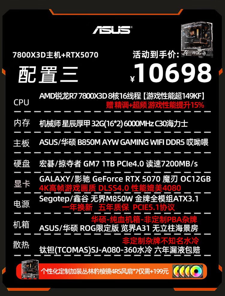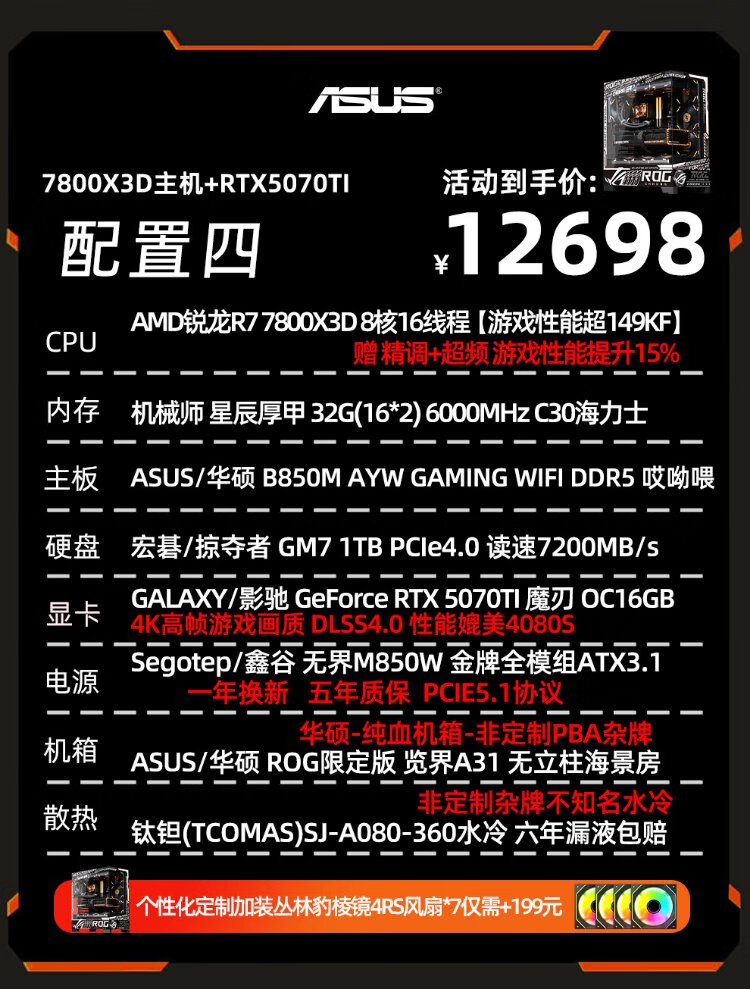 AMD 7800x3d host 5070 5070ti host Asus rog family bucket aiy game e-sports sea view room desktop complete assembly computer 7800x3d host + RTX5070丨three