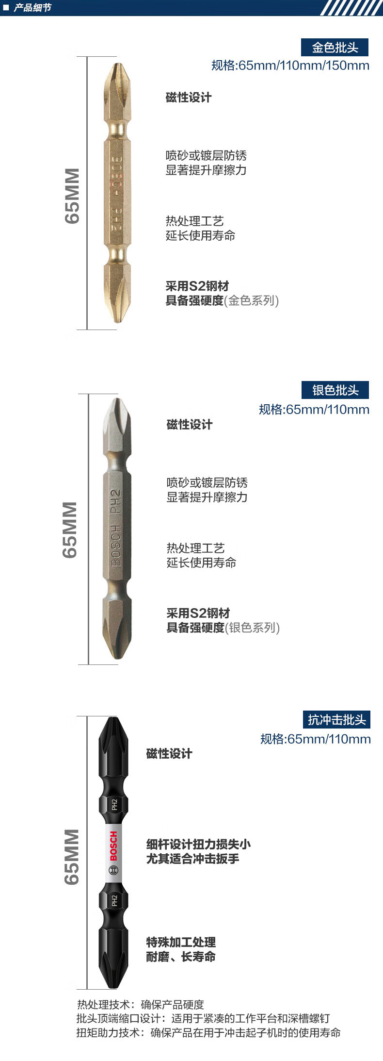 BOSCH Bosch cross bit electric screwdriver head impact-resistant double-head screwdriver bit rechargeable drill driver head PH2/150mm impact-resistant bit single