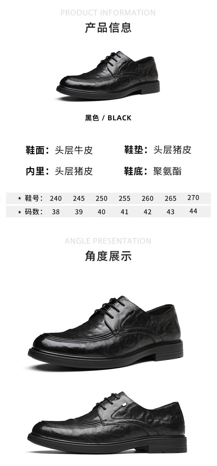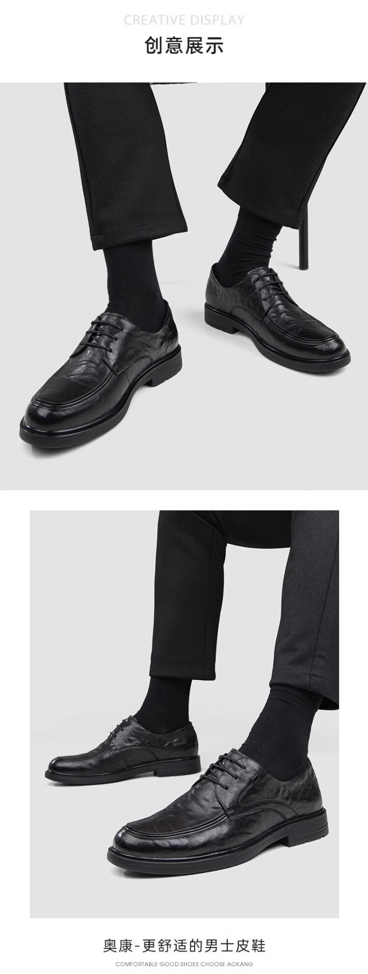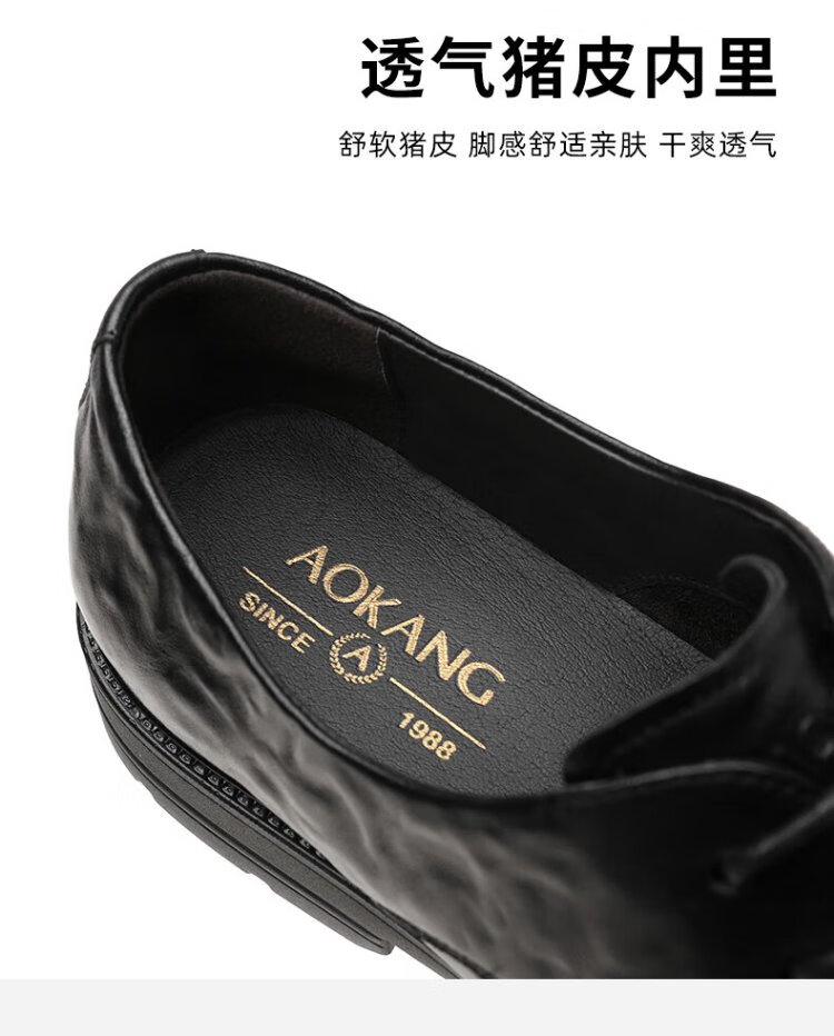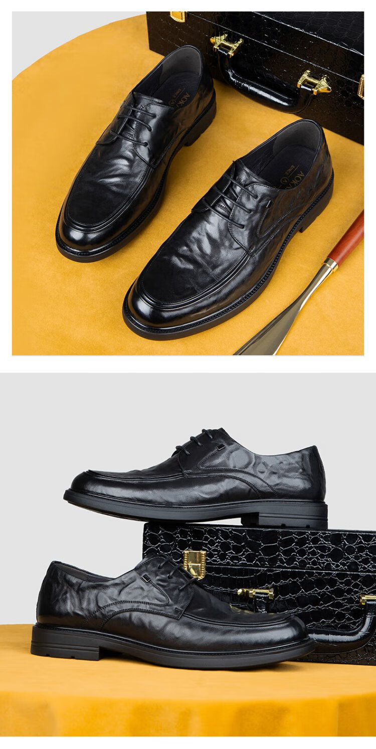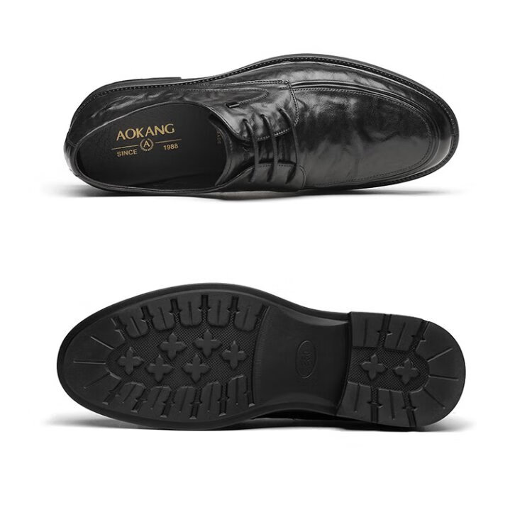 Aokang Men's Shoes Genuine Leather Men's Leather Shoes Spring and Autumn New Business Casual Commuting Shoes Lace Up Single Shoes Soft Sole Formal Shoes Black Four Seasons 42
