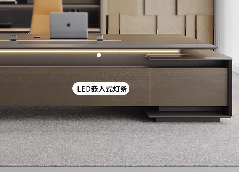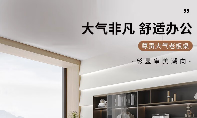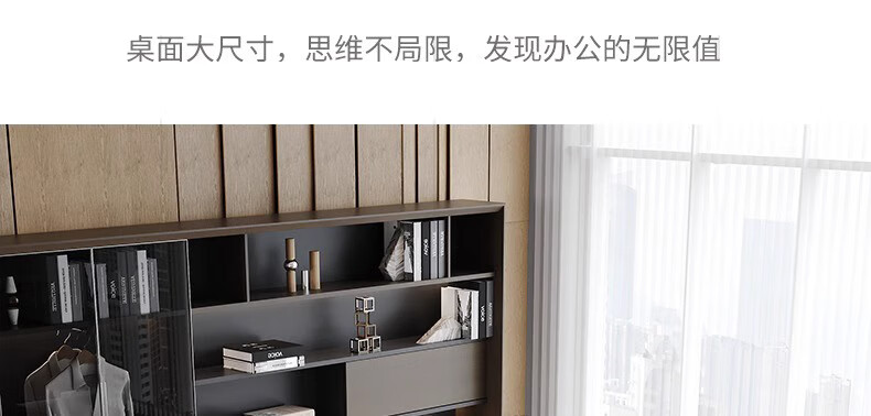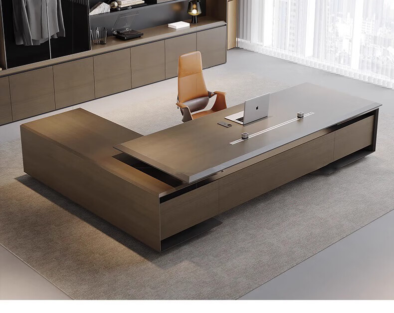 Hanjitangyu modern light luxury office desk, elegant boss table, simple office desk and chair combination, high-end executive desk, president table, double cabinet 2.8m boss table (with side table)