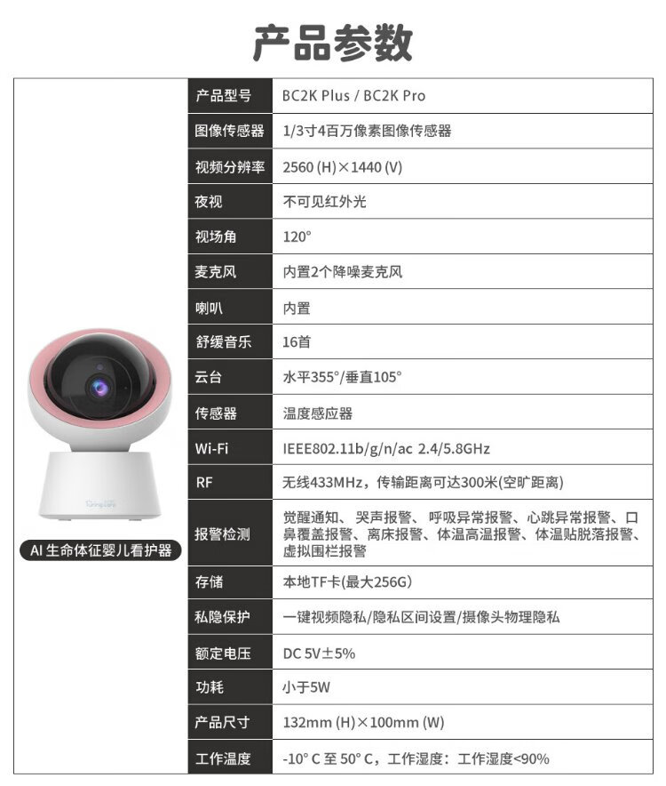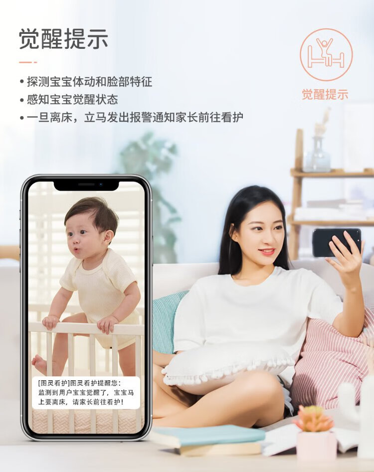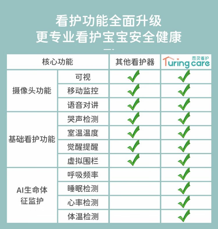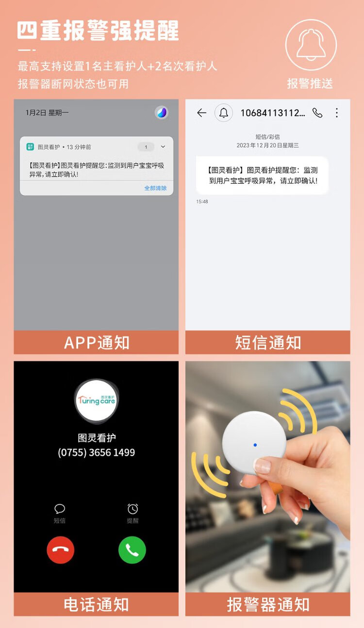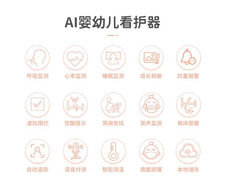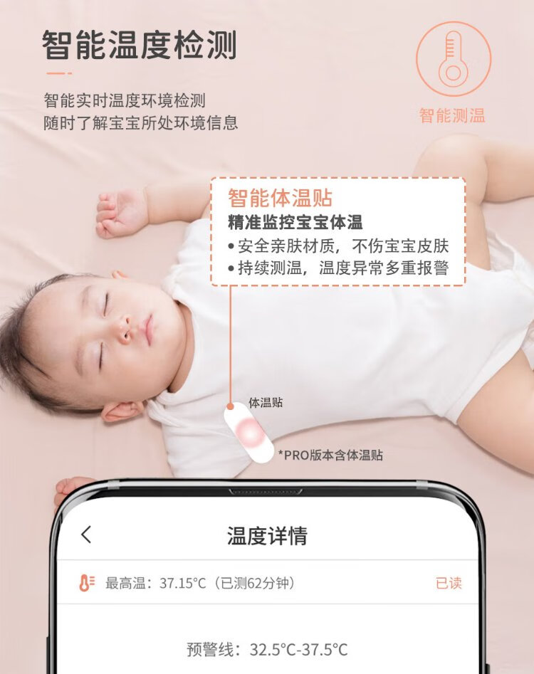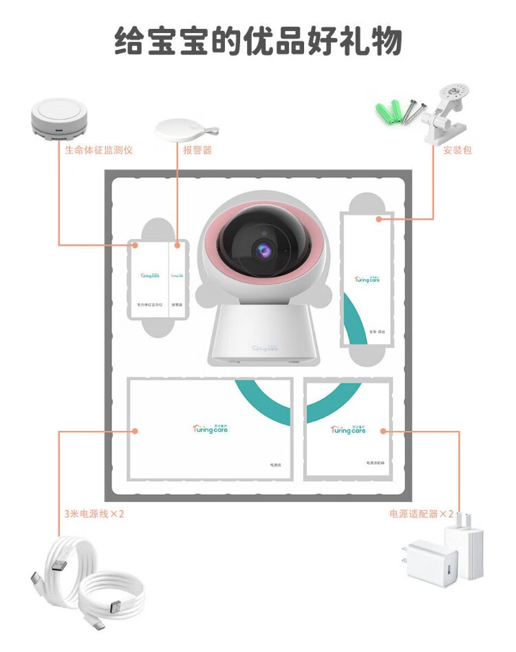Turing Baby Care Baby Care Vital Signs Respiration Heart Rate Sleep Monitoring Growth Album AI Smart Baby Care WIFI丨Sakura Pink