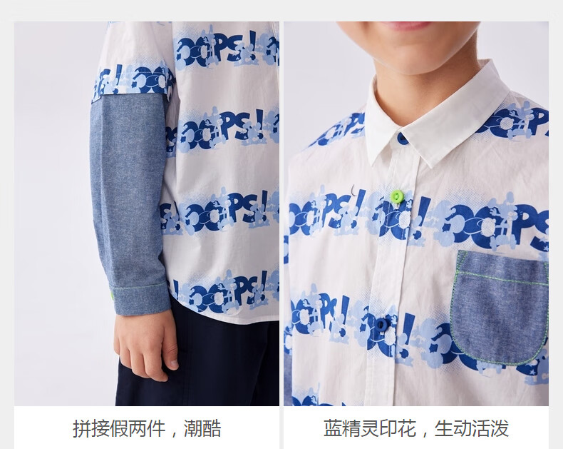 Ma Latin (M.Latin)/Shopping mall same style children's shirt new spring new male and older boy Smurf long-sleeved shirt floral blue 110