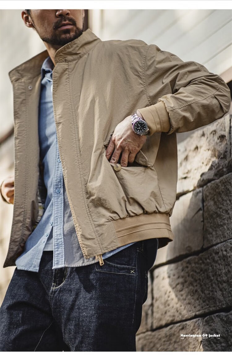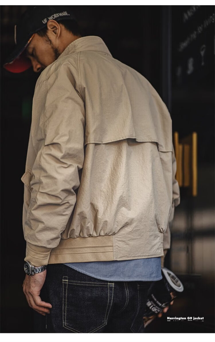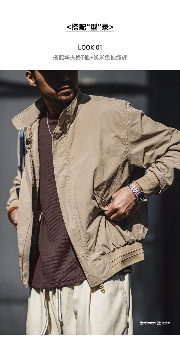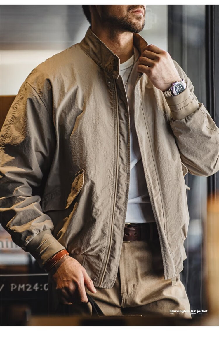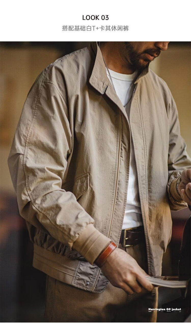 Madden Workwear American Retro Harrington G9 Stand Collar Jacket Men's Autumn Light Outdoor Ami Khaki Men's Casual Jacket Light Khaki (Loose Fit) M