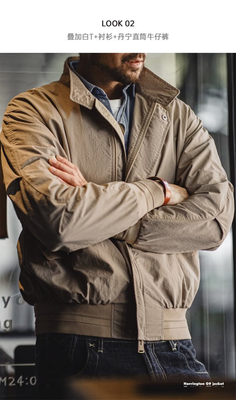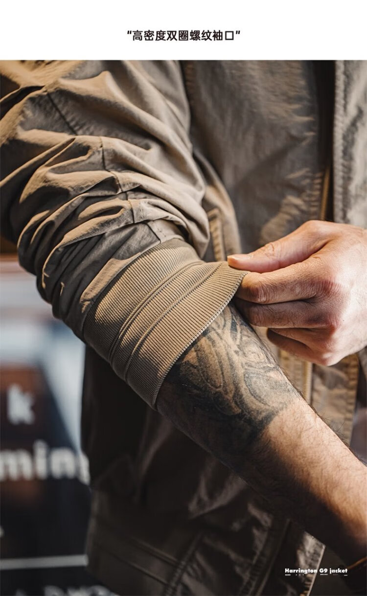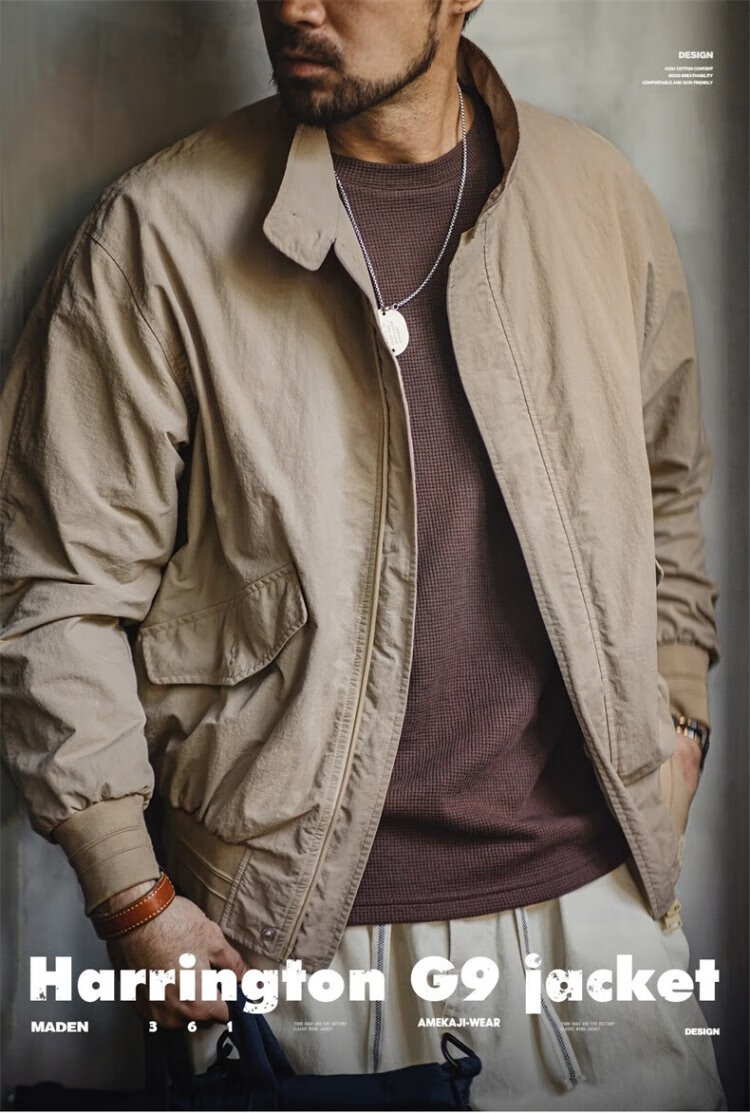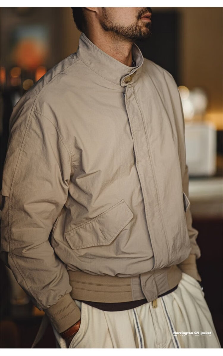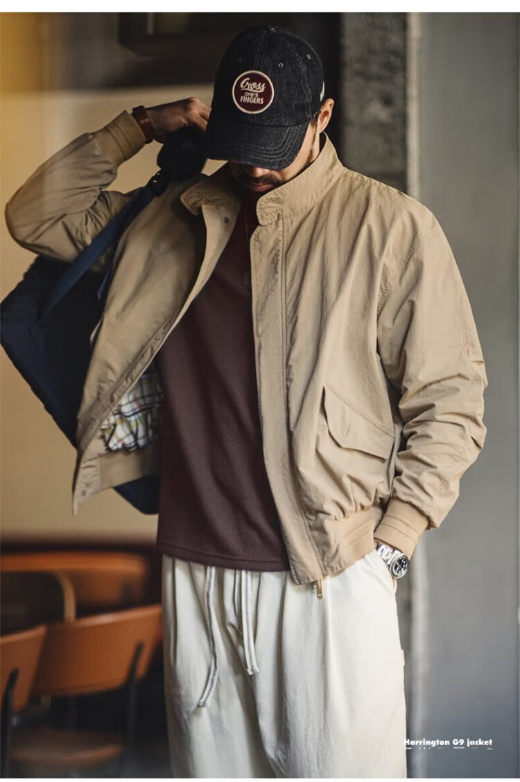 Madden Workwear American Retro Harrington G9 Stand Collar Jacket Men's Autumn Light Outdoor Ami Khaki Men's Casual Jacket Light Khaki (Loose Fit) M