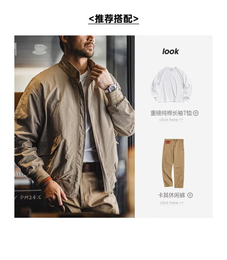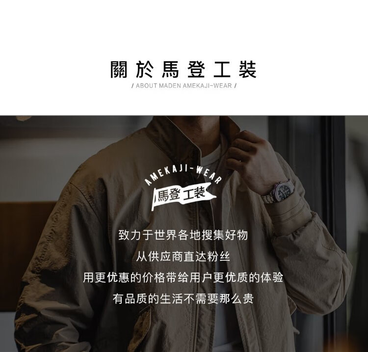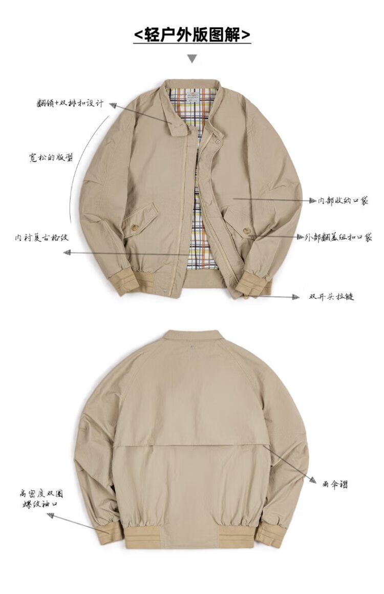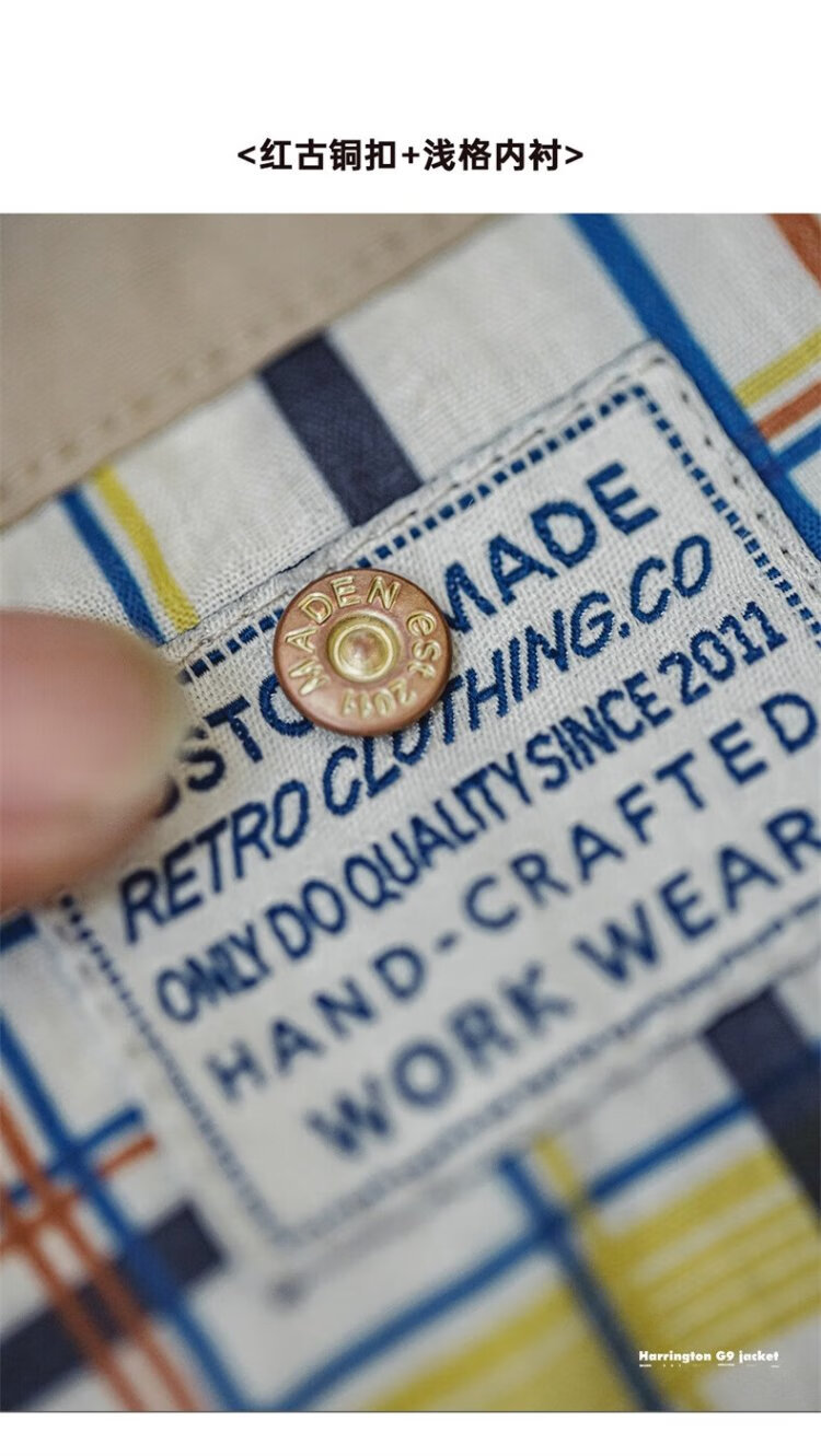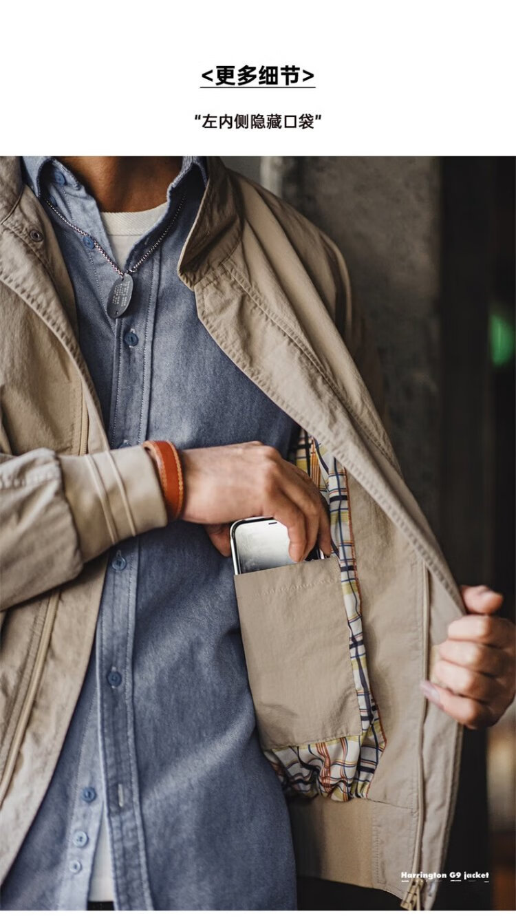 Madden Workwear American Retro Harrington G9 Stand Collar Jacket Men's Autumn Light Outdoor Ami Khaki Men's Casual Jacket Light Khaki (Loose Fit) M