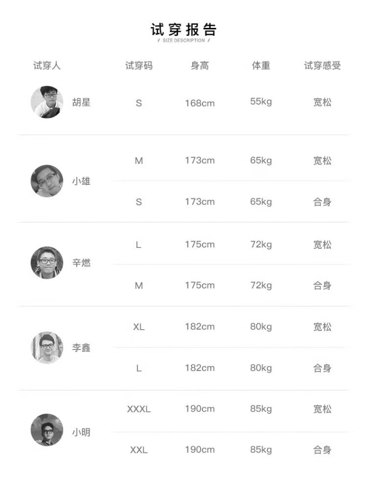 China (cm) 160-165/84-86 165-170 / 88-90 167-172 / 92-96 168-173 / 98-102 170-176 / 106-110