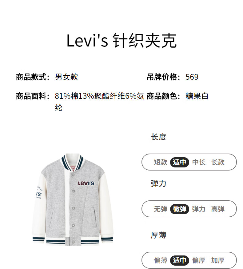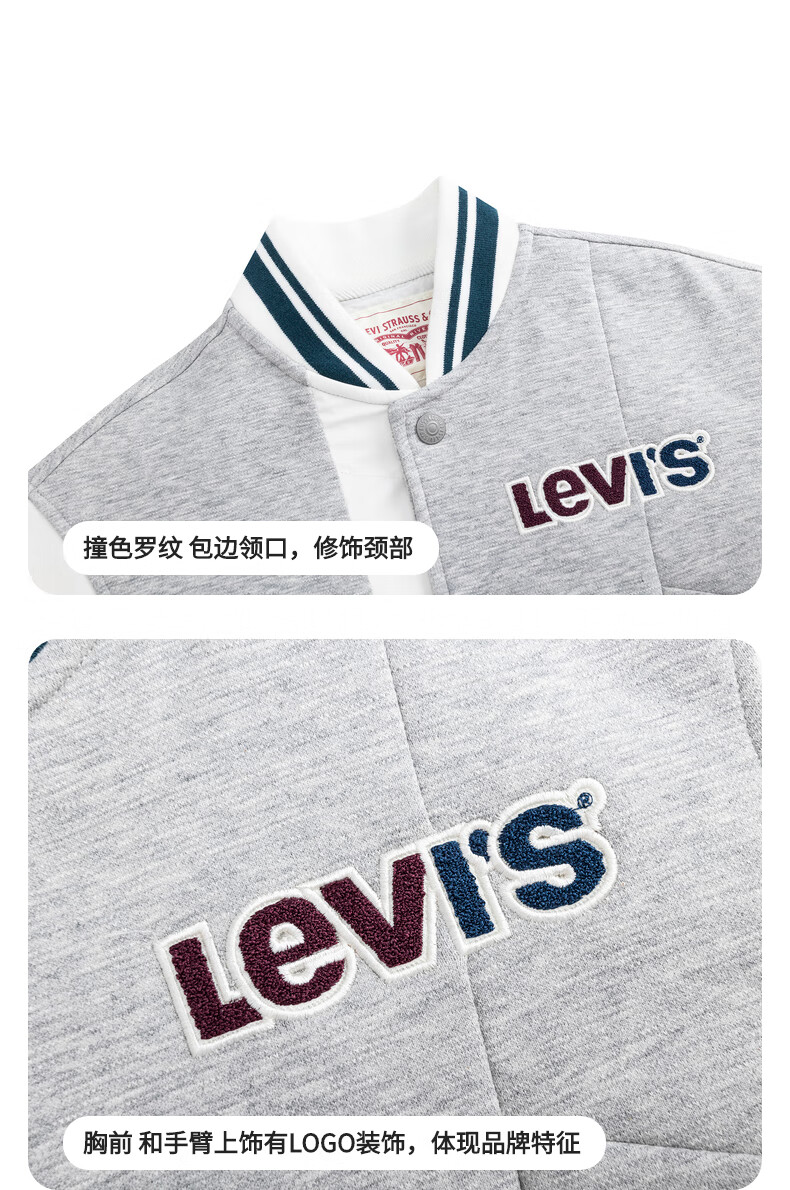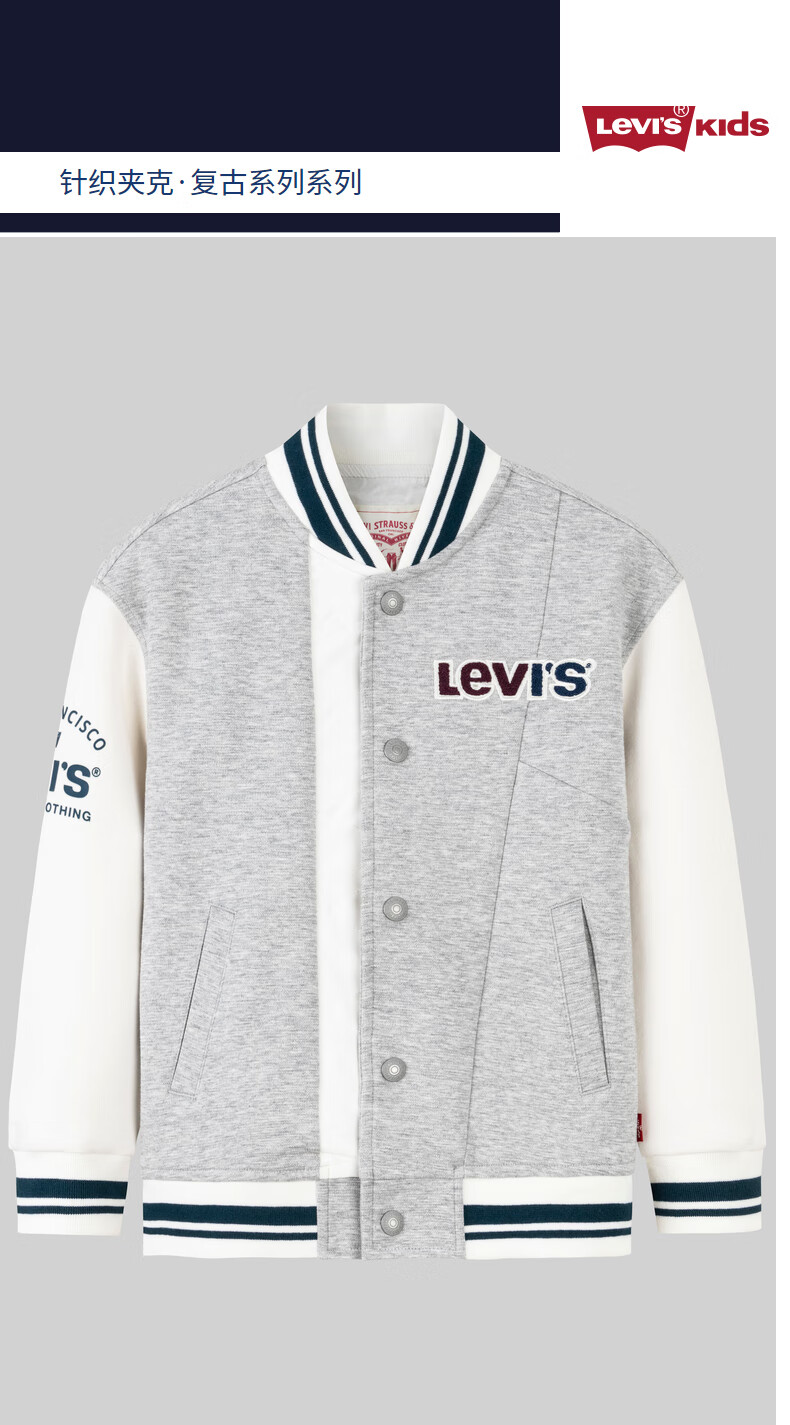 Levi s Levi's children's clothing, the same style in the mall, autumn new boys' knitted jacket, children's baseball uniform jacket, candy white 130/64 recommended height 116-122cm