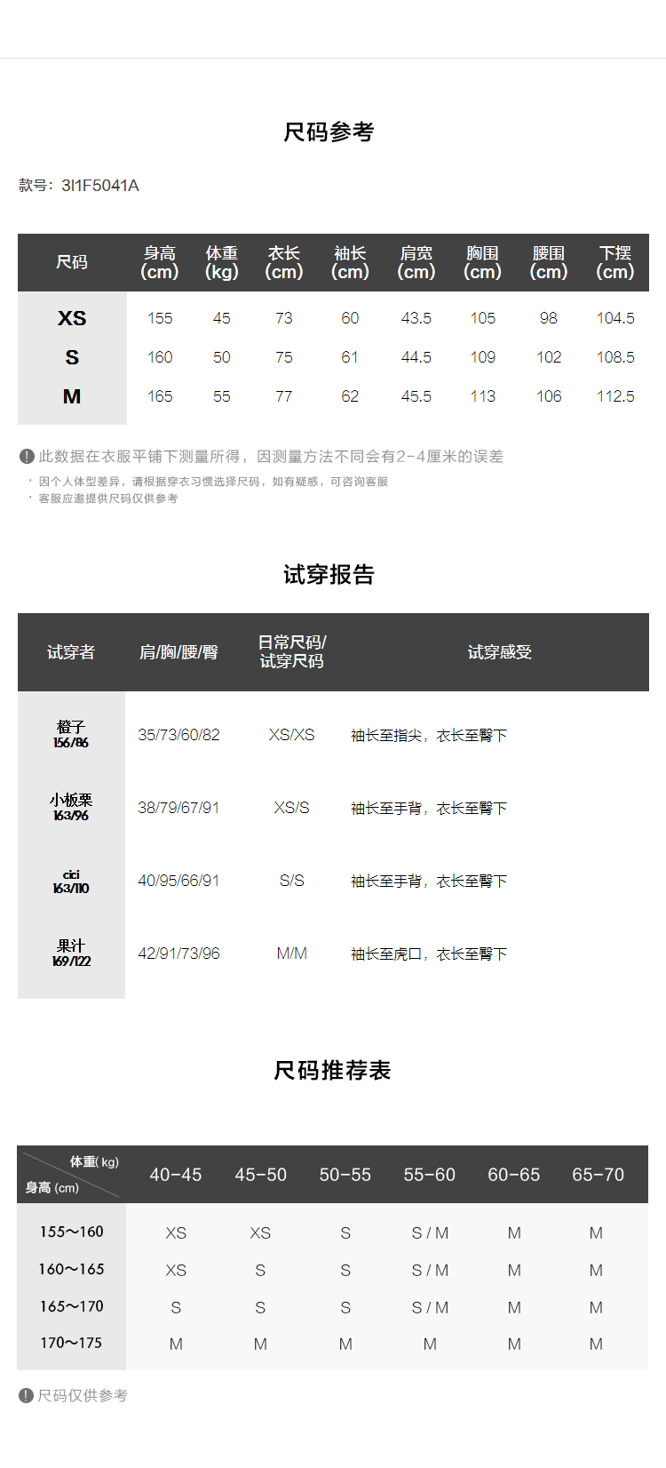 China (cm) 160-165/84-86 165-170 / 88-90 167-172 / 92-96 168-173 / 98-102 170-176 / 106-110