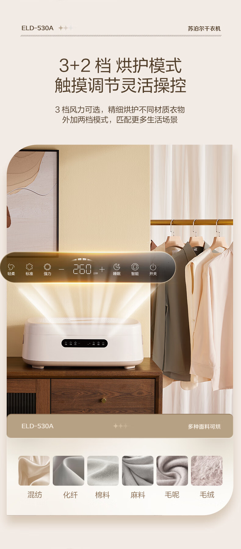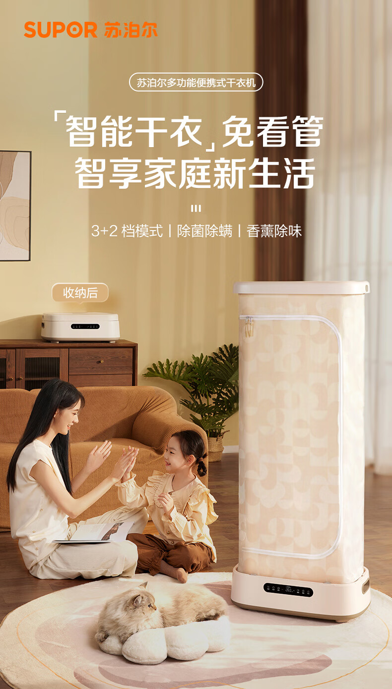 SUPOR dryer household dryer folding dryer portable multi-functional hot air clothes cloth cover heat pump dryer dehumidifier baby sterilization and mite removal ELD-530A off-white 150L