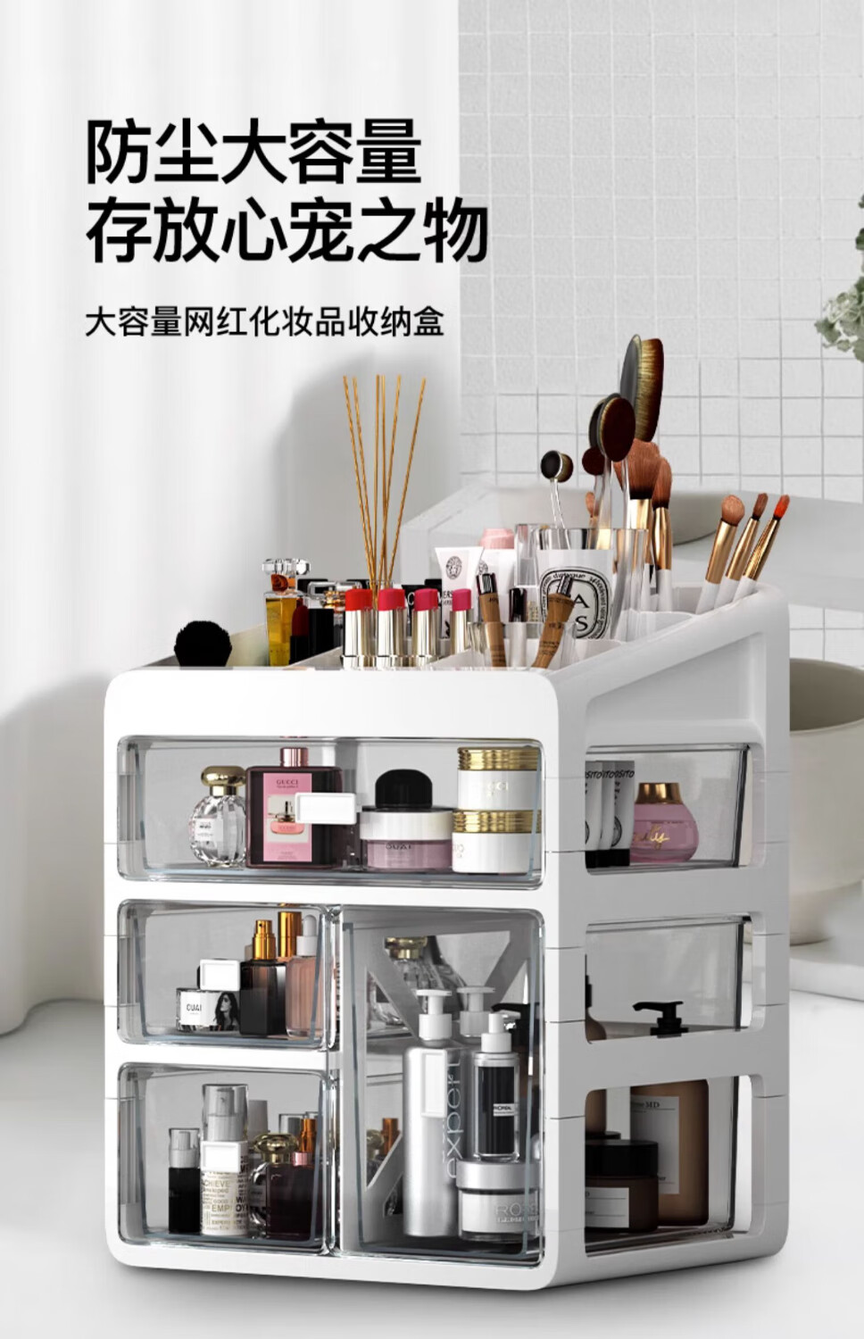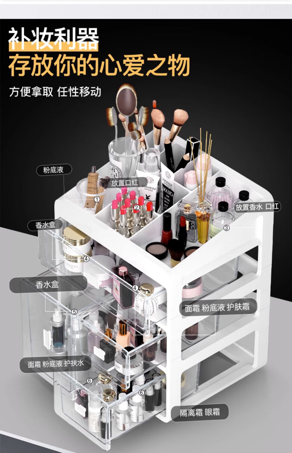 Nifeng Cosmetic Storage Box Dressing Table Desktop Lipstick Mask Jewelry Skin Care Dustproof Organizing Drawer Storage Shelf Small Basic Model-Two Layers