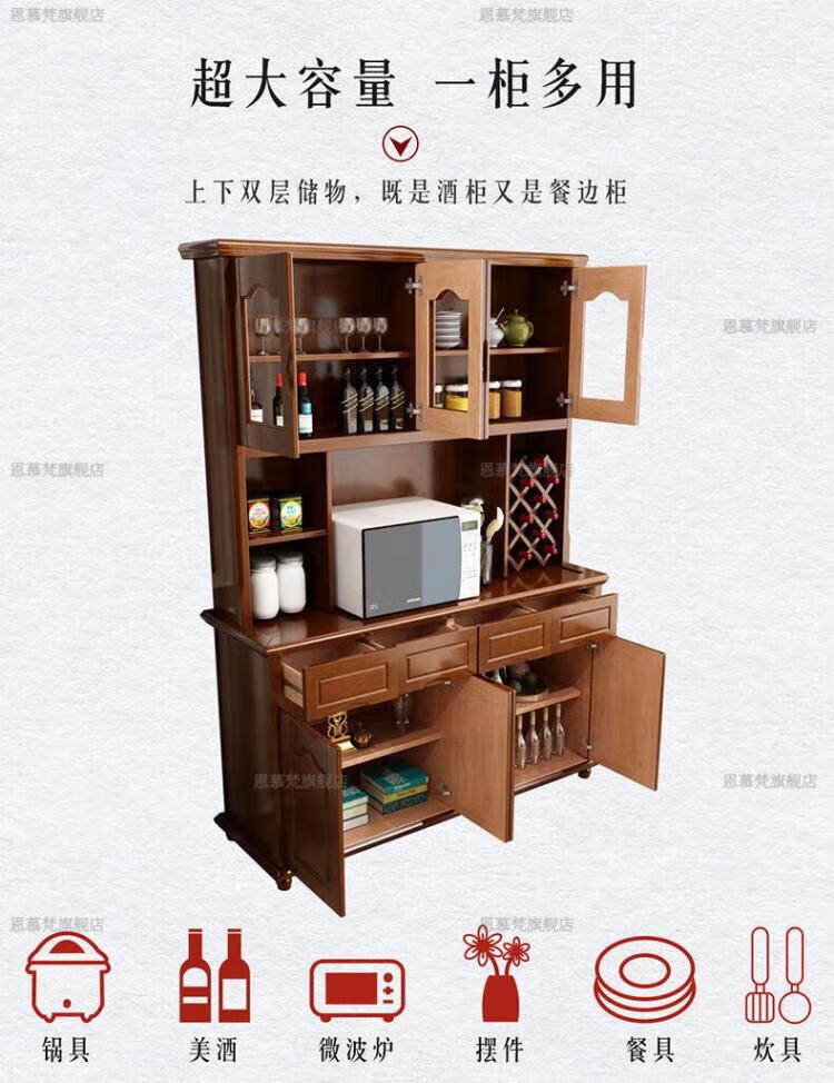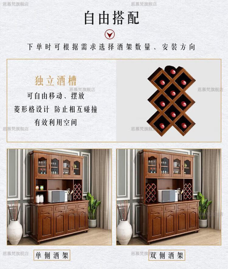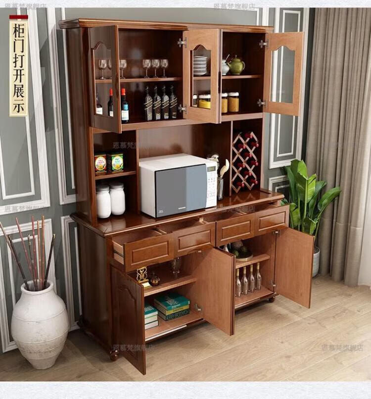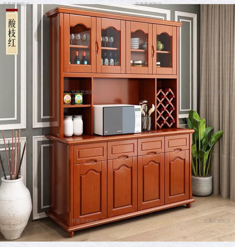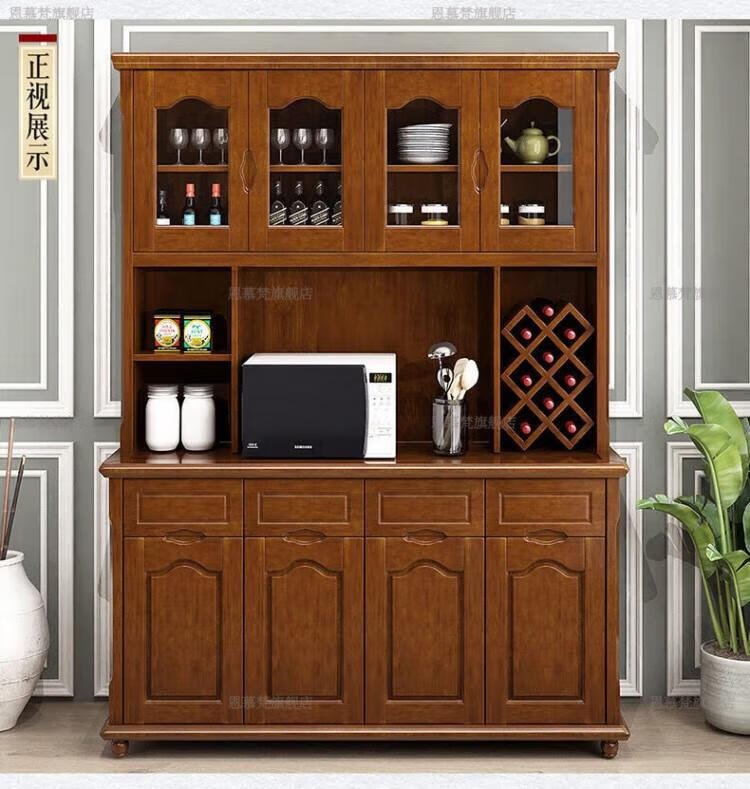 Enmufan 2026 new solid wood wine cabinet new Chinese style wall-mounted multi-functional storage cabinet high cabinet living room tea cabinet integrated cabinet 02 (1.2 meters) Begonia color