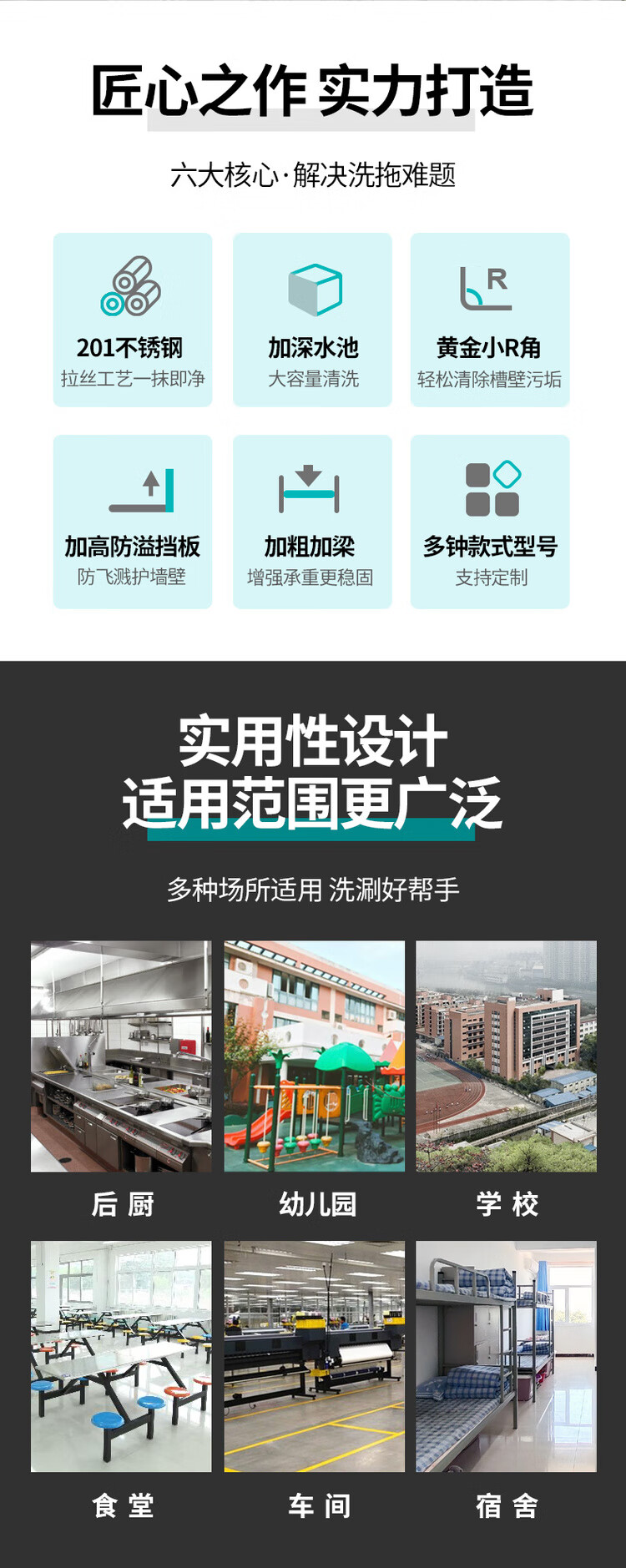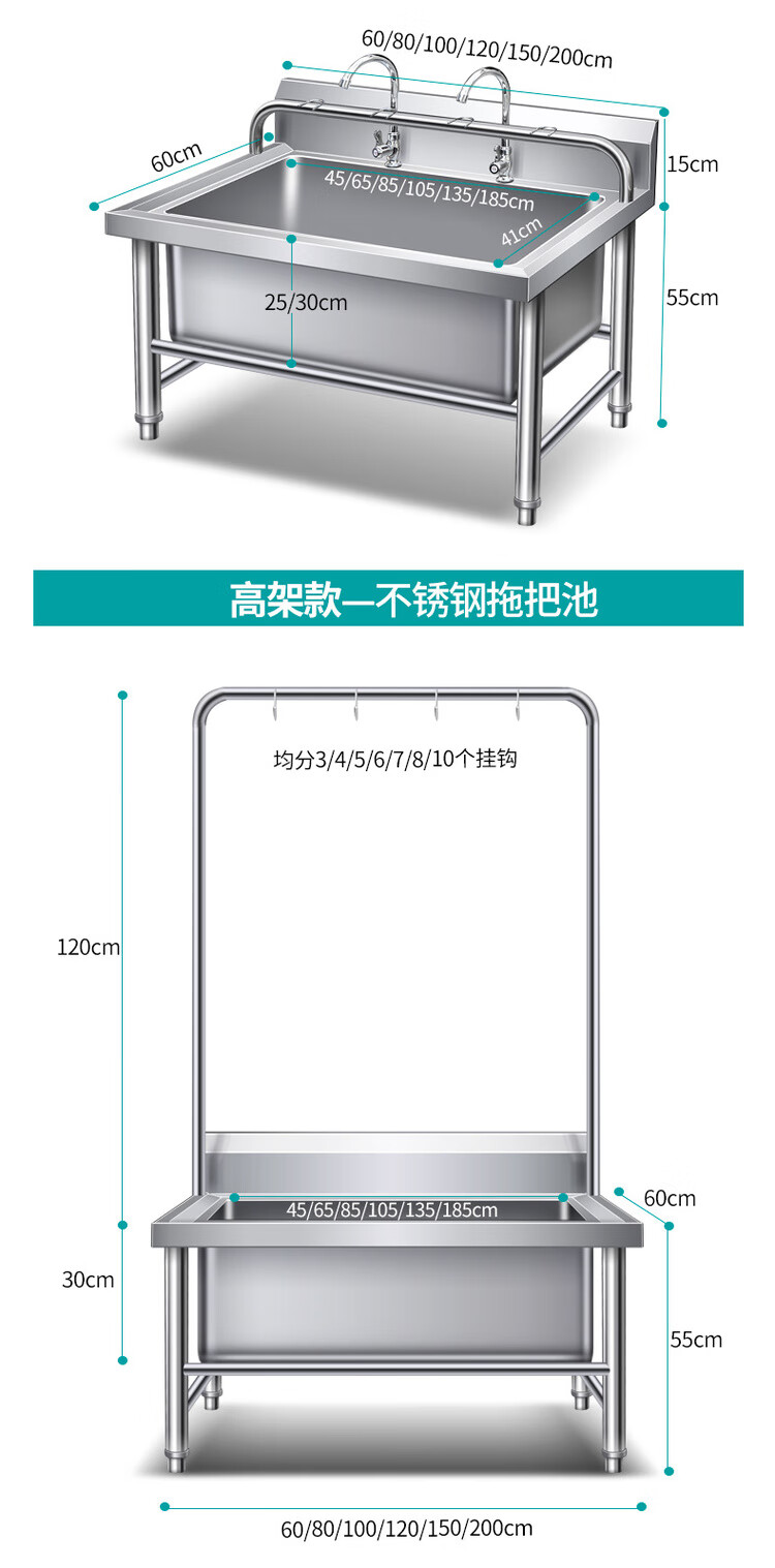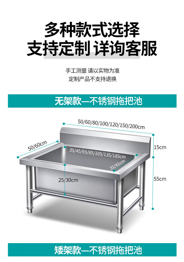 Stainless steel commercial mop pool integrated wash mop pool mop pool household balcony outdoor factory pool sink without shelf 50*50*55 pool depth 25cm-open 1