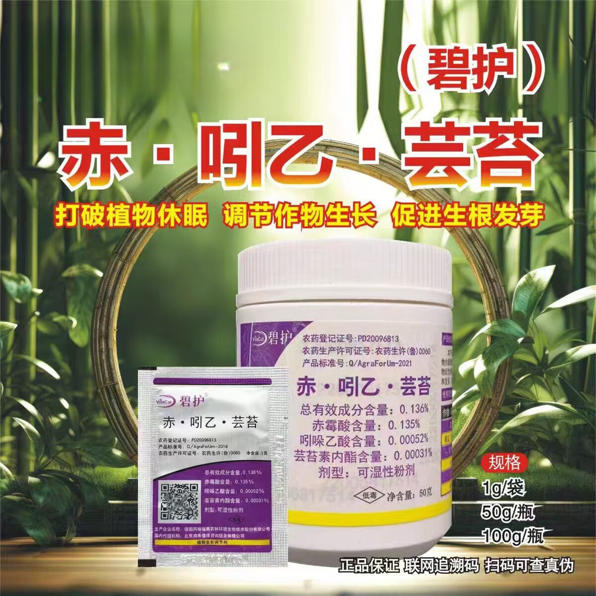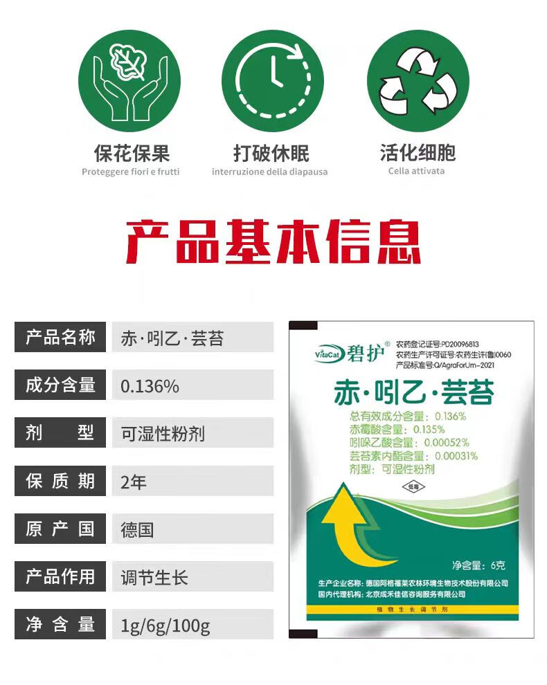 Bihu Germany imported Bihu gibberellic acid, indole, brassinoids, flower and fruit protection, antidote to pesticide damage, plant growth regulator 100g